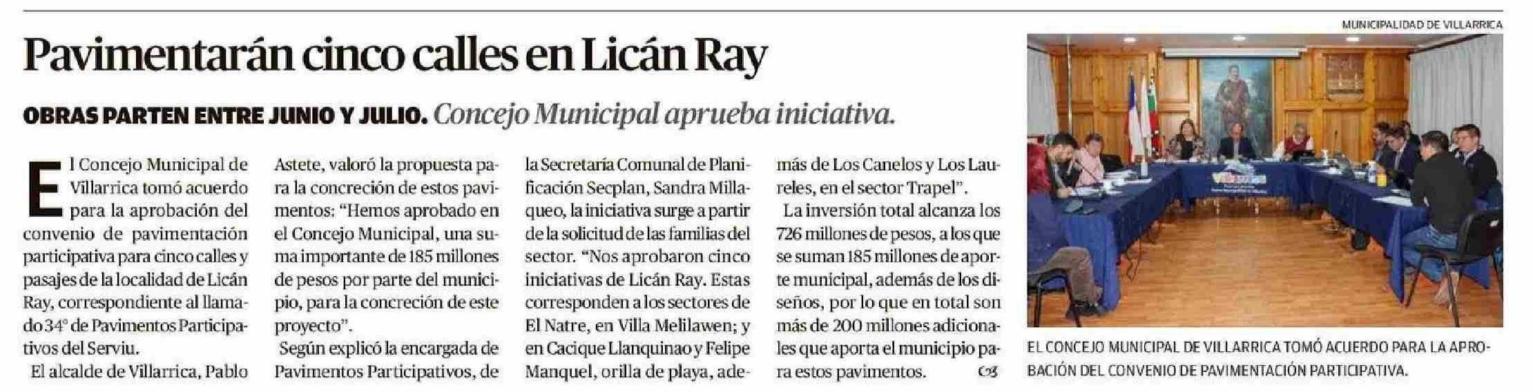 Pavimentarán cinco calles en Licán Ray 06-05-2025 El Austral de la Araucanía |