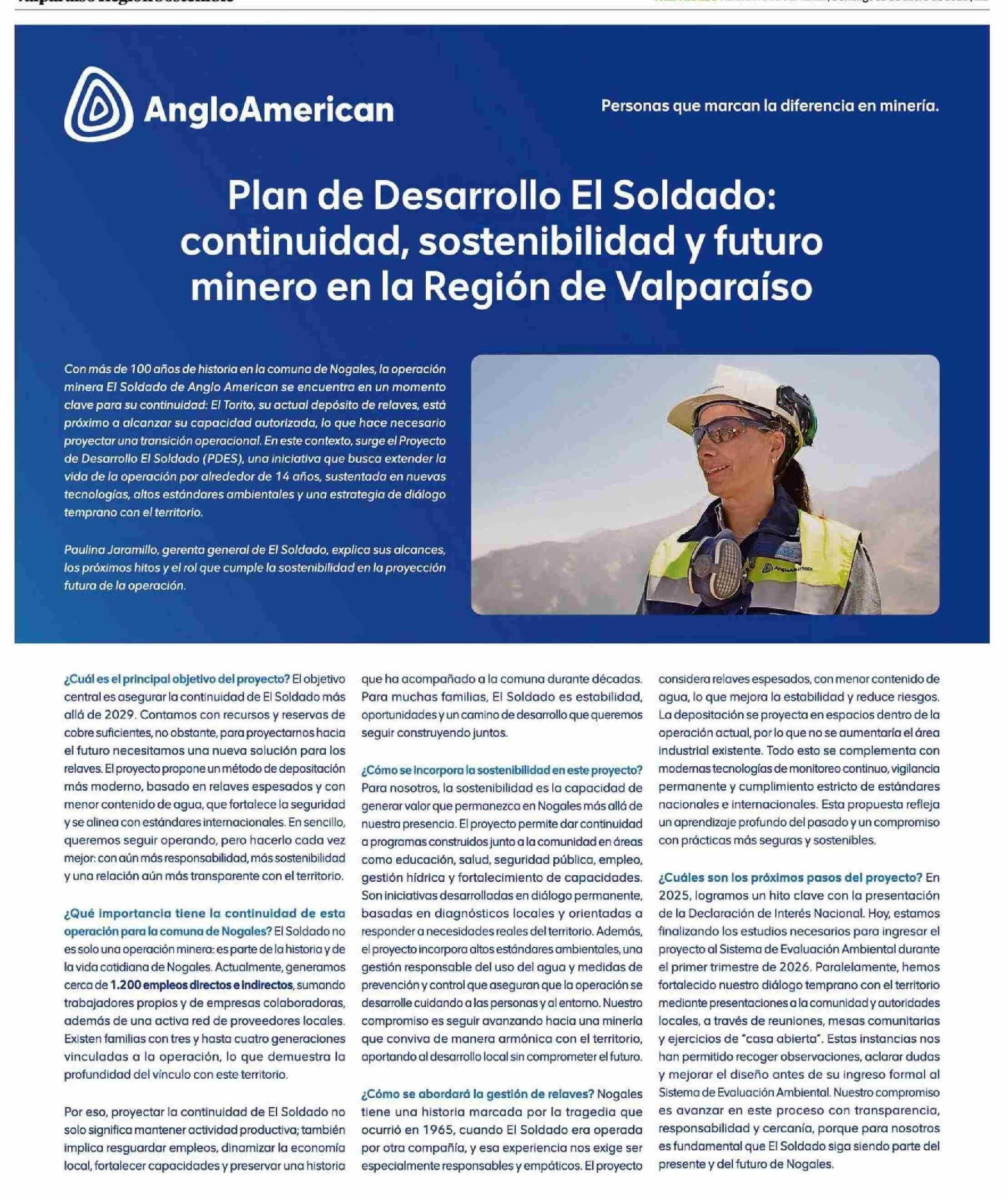 Plan de Desarrollo El Soldado: continuidad, sostenibilidad y futuro minero en la Región de Valparaíso 18-01-2026 El Mercurio de Valparaíso |