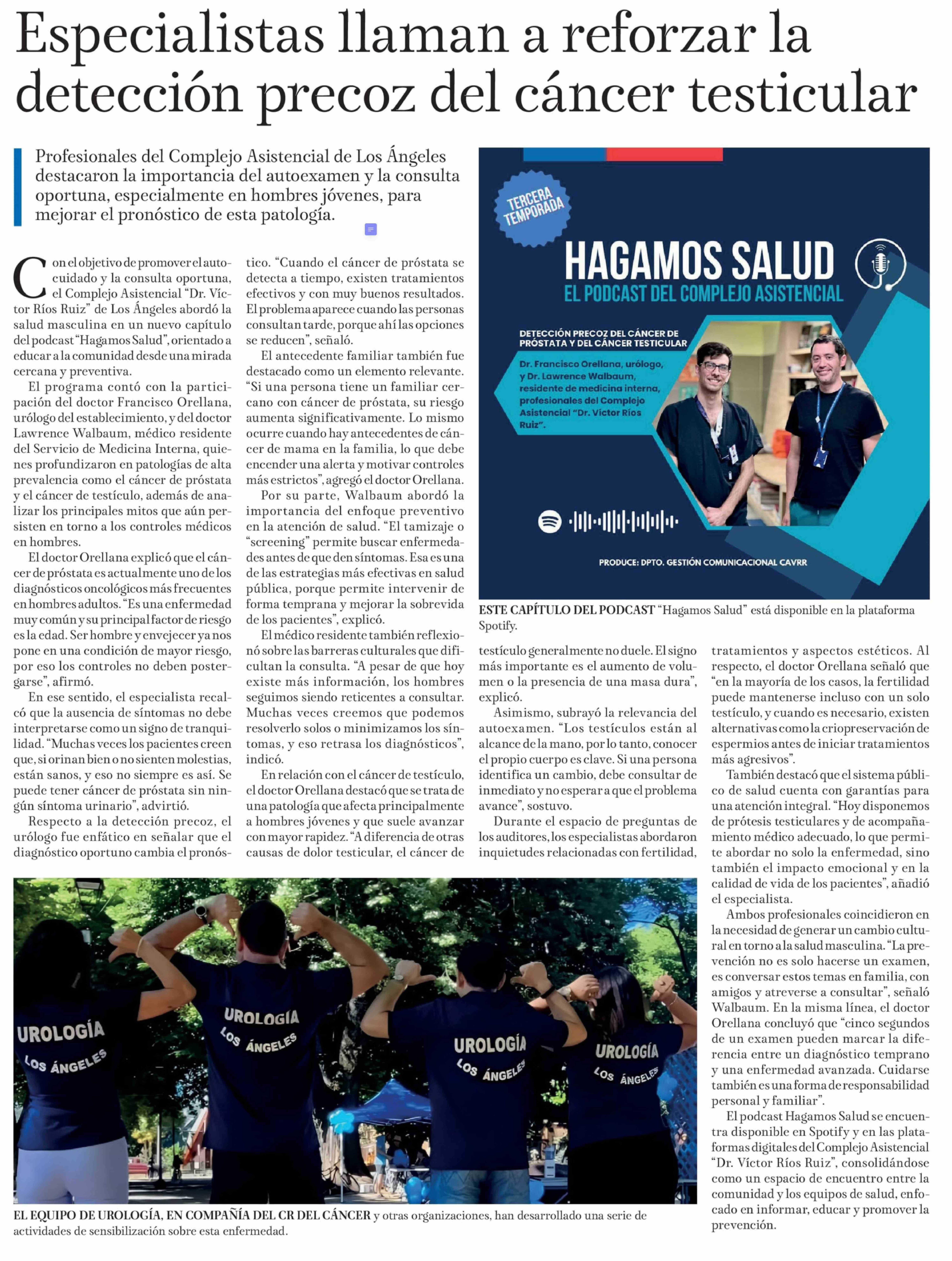 | Título: | Especialistas llaman a reforzar la detección precoz del cáncer testicular |
