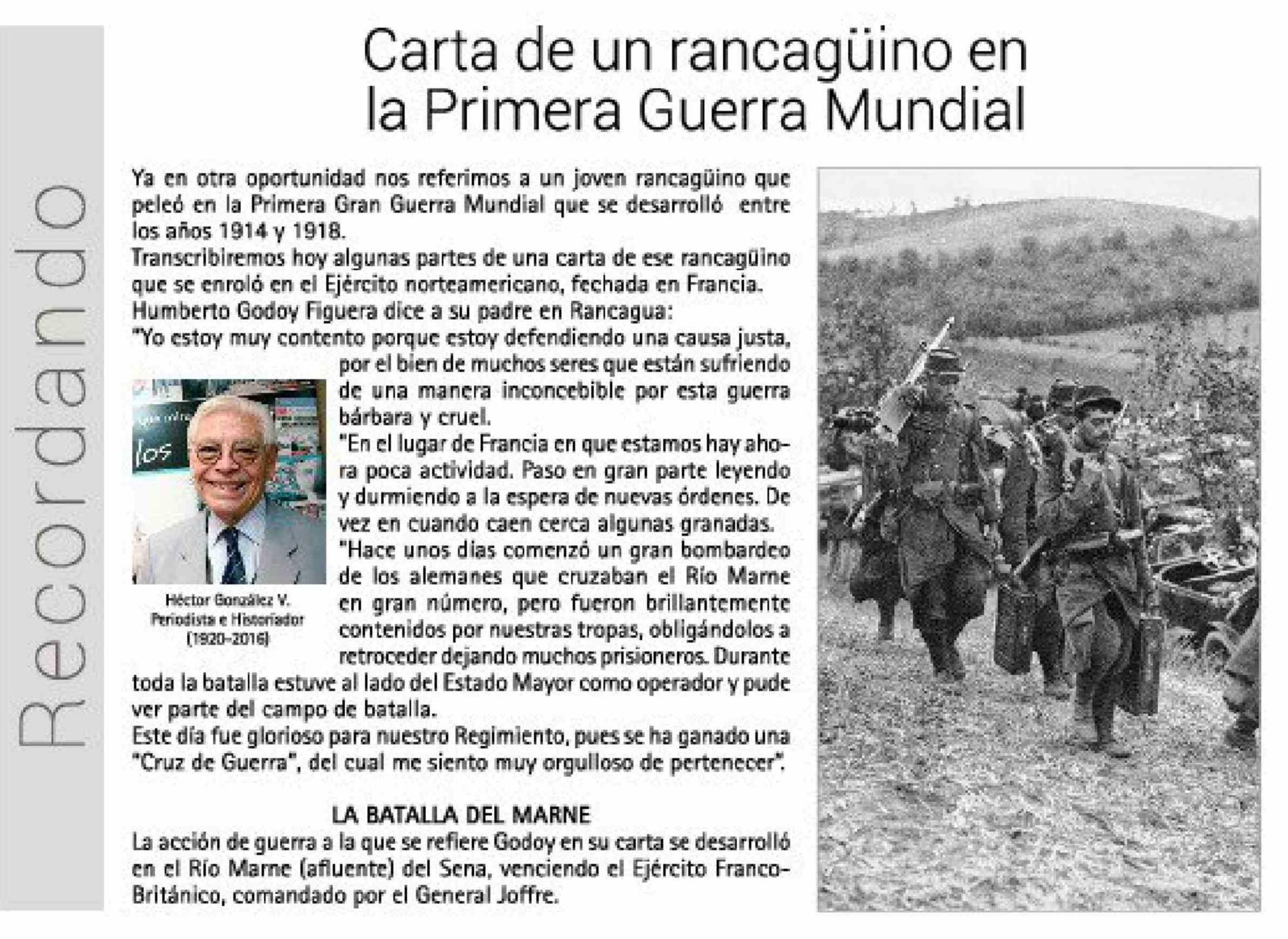 Columnas de Opinión: Carta de un rancagüino en la Primera Guerra Mundial 15-04-2026 El Rancagüino |