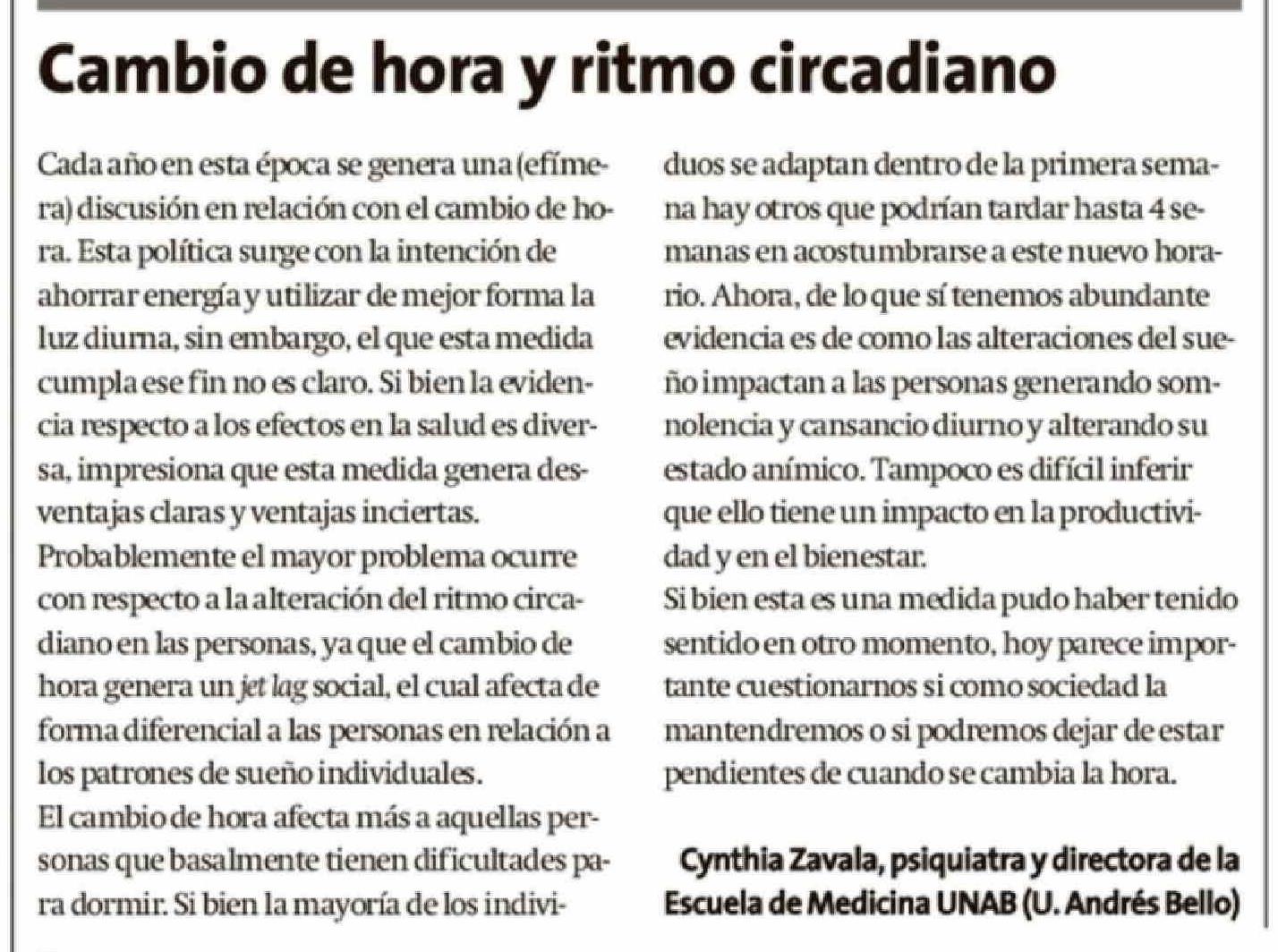 Cartas: Cambio de hora y ritmo circadiano 06-04-2026 La Estrella de Chiloé |