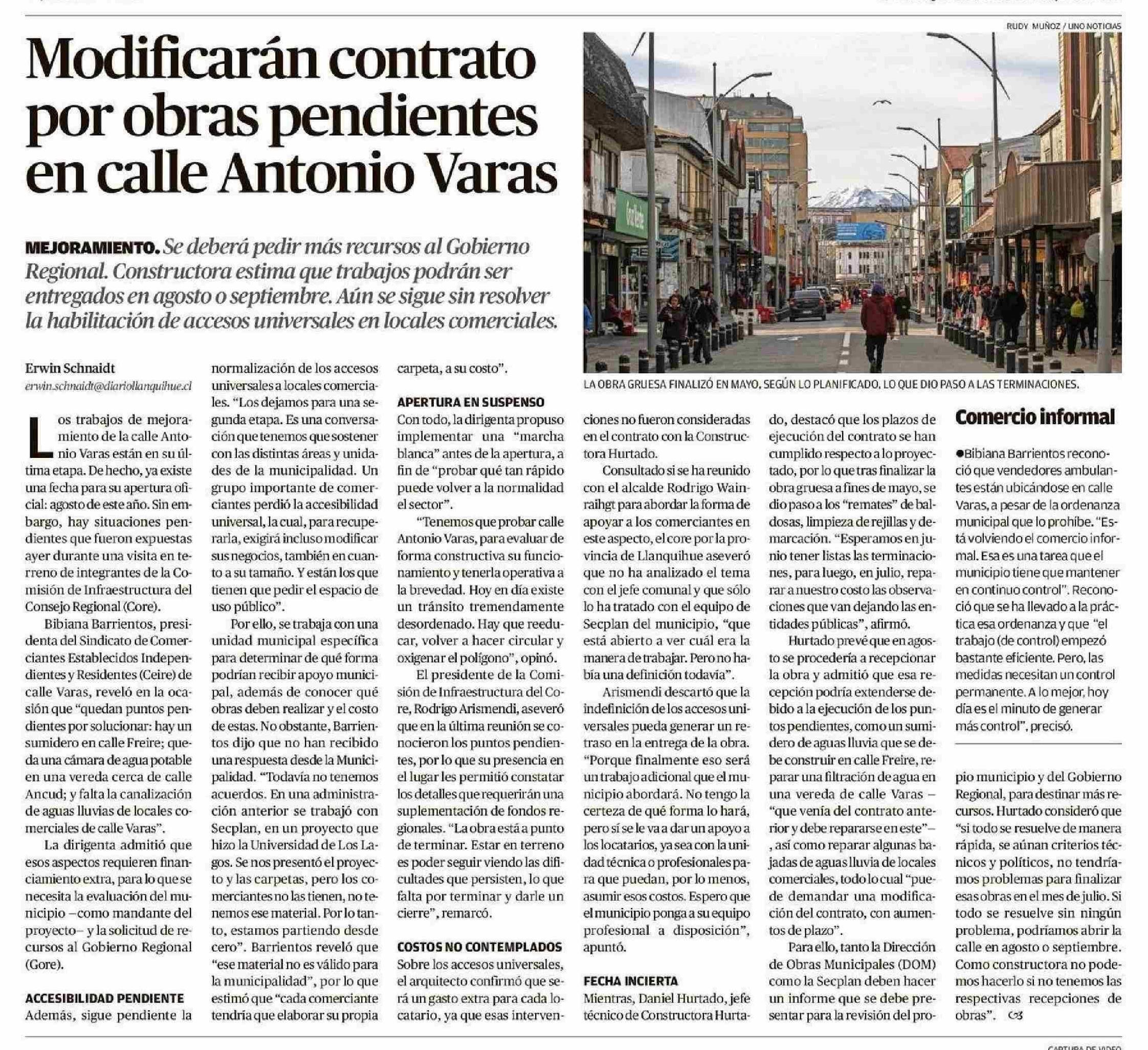 | Título: | Modificarán contrato por obras pendientes en calle Antonio Varas |