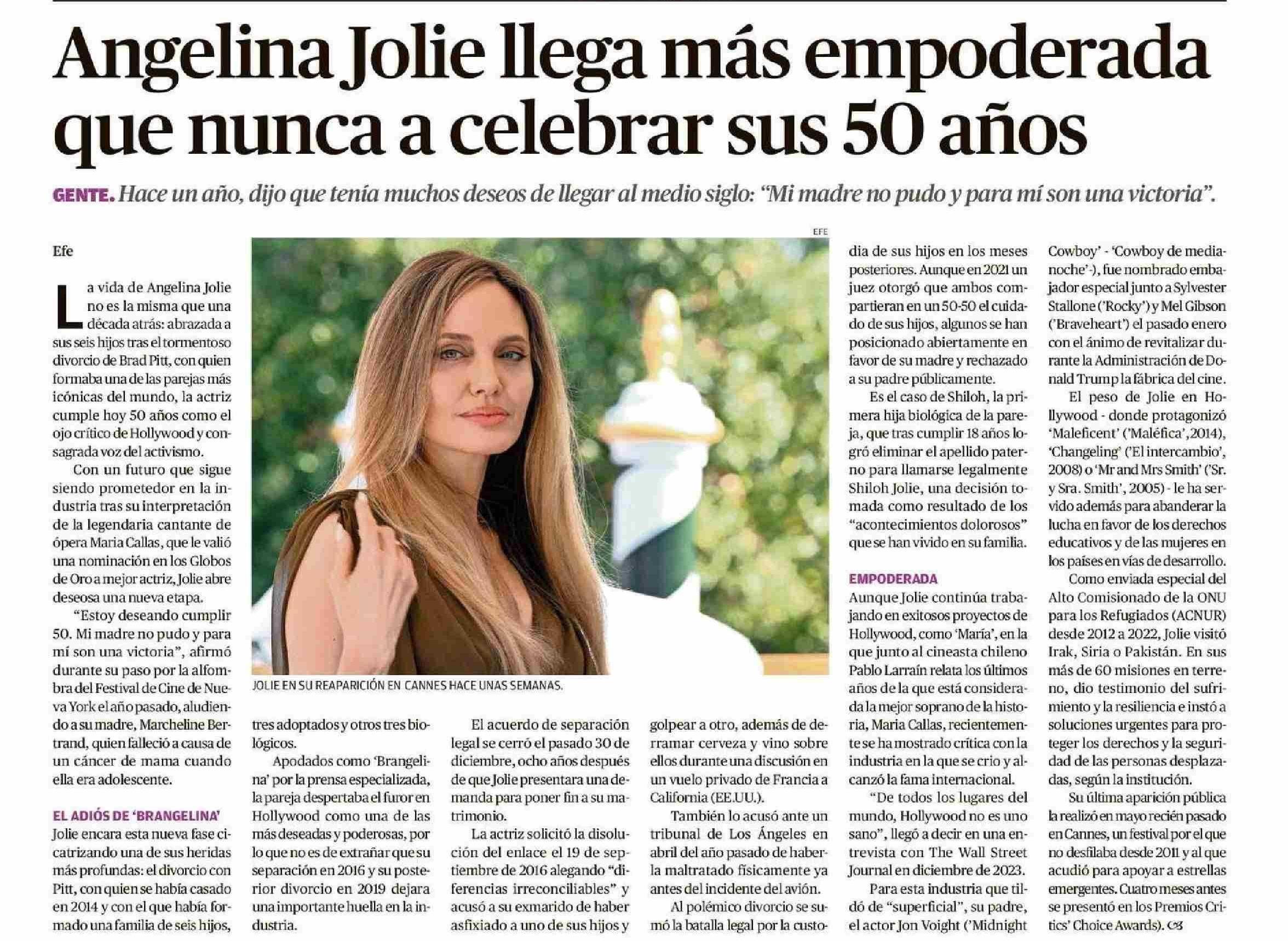 | Título: | Angelina Jolie llega más empoderada que nunca a celebrar sus 50 años |