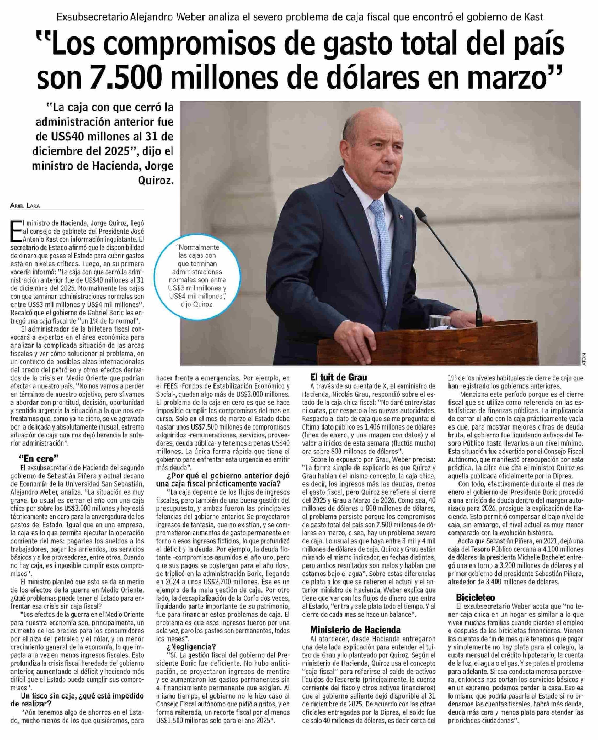 Título: "Los compromisos de gasto total del país son 7.500 millones de dólares en marzo"