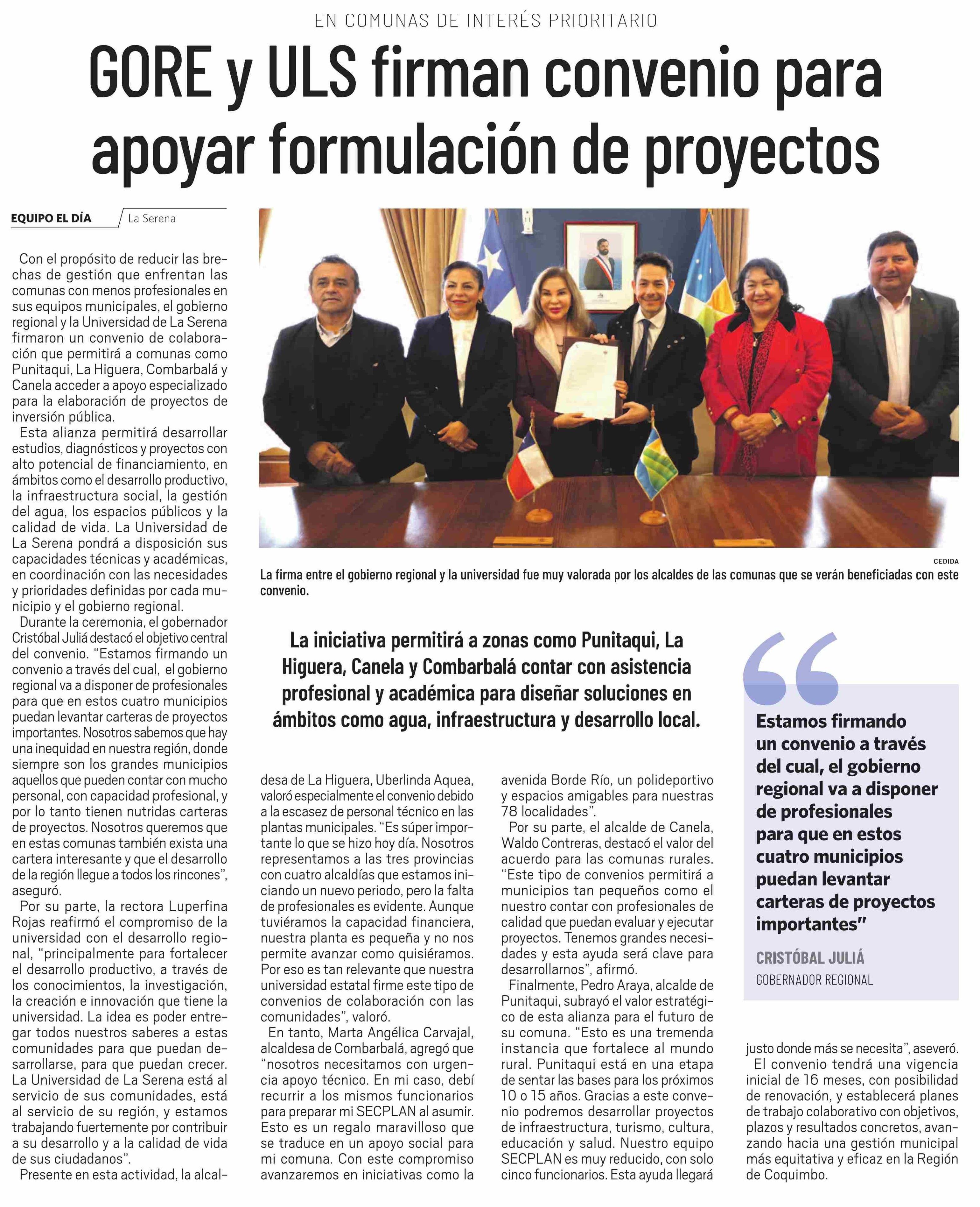 GORE y ULS firman convenio para GORE y ULS firman convenio para apoyar formulación de proyectos apoyar formulación de proyectos 14-06-2025 El Día |