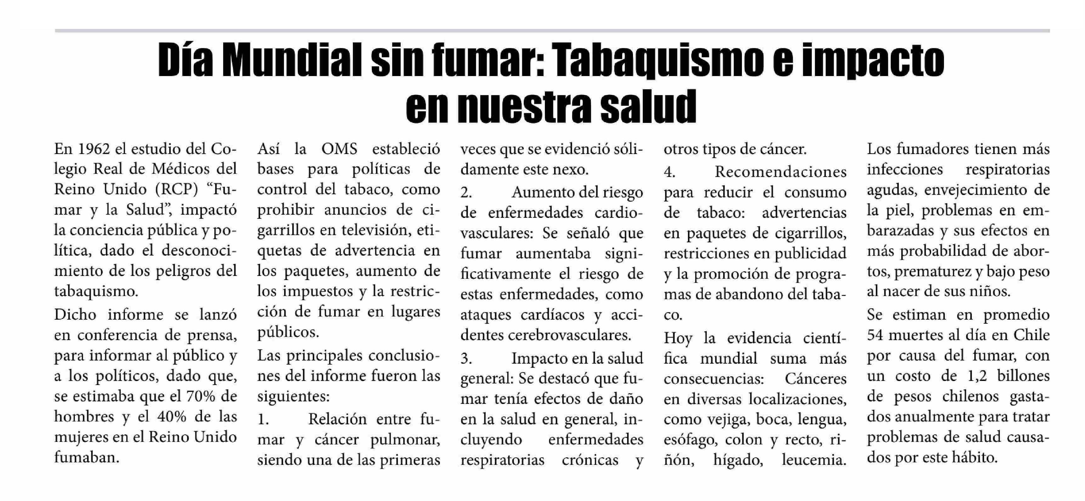 | Título: | Día Mundial sin fumar: Tabaquismo e impacto en nuestra salud |