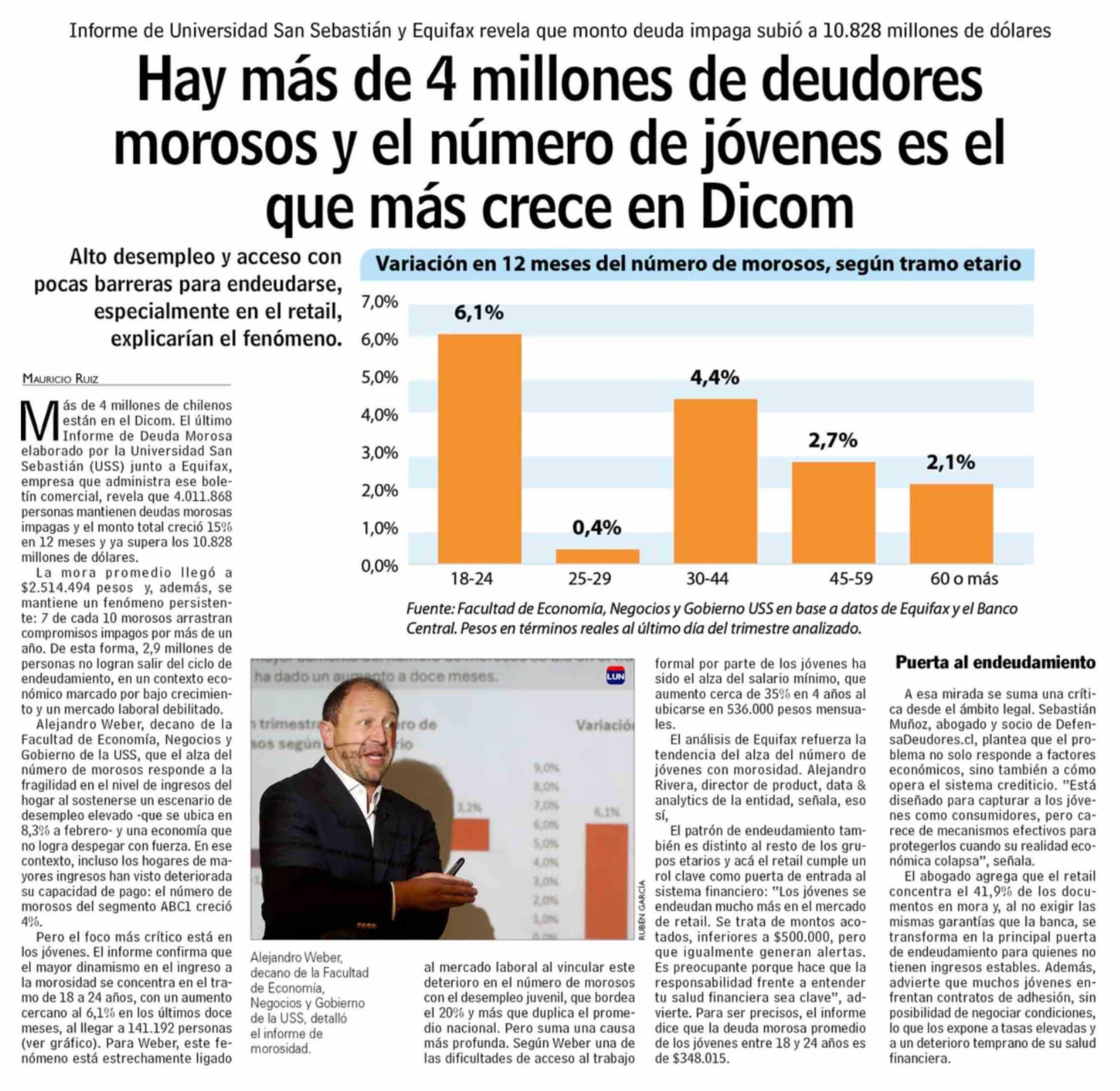 Título: Hay más de 4 millones de deudores morosos y el numero de jóvenes es el que más crece en Dicom
