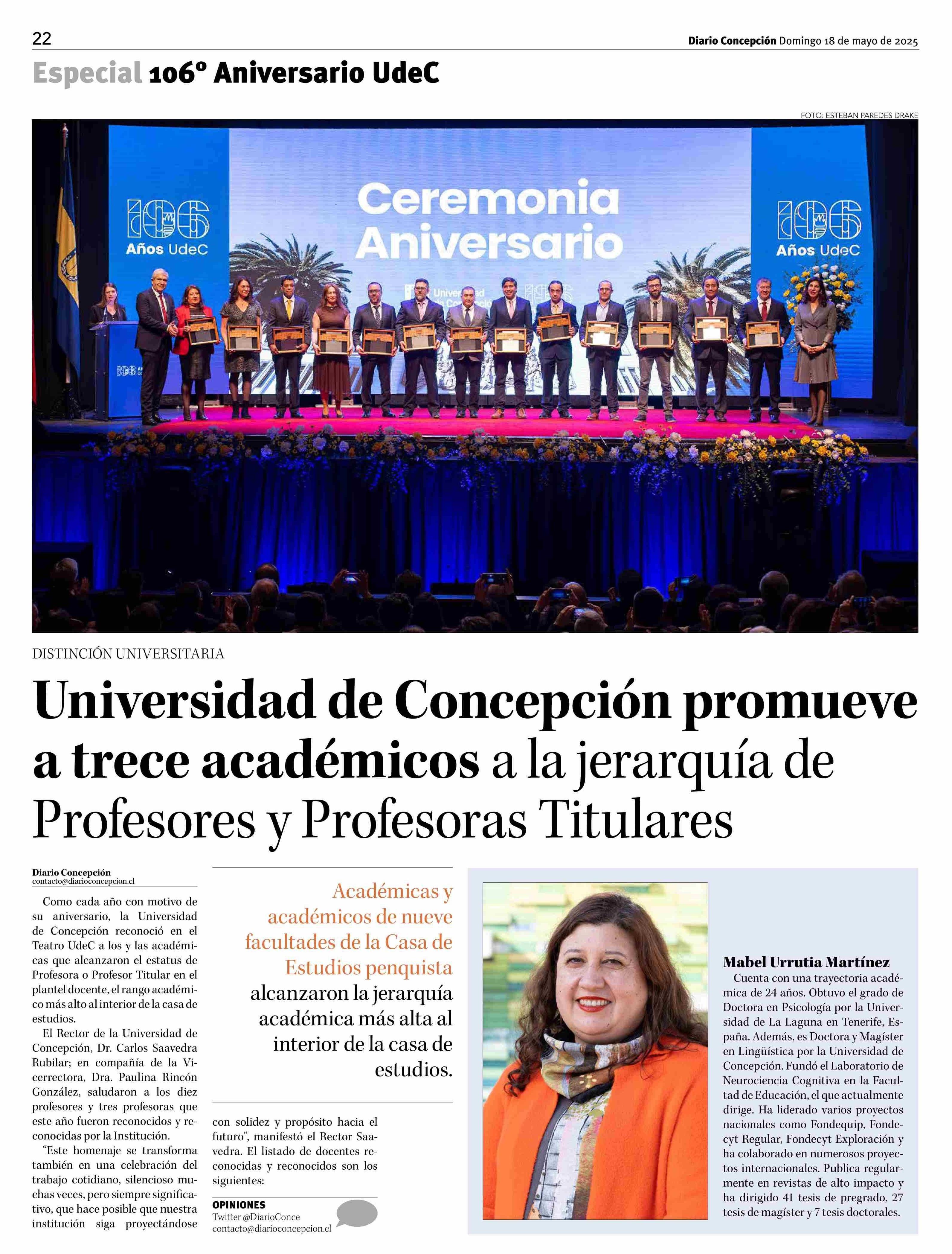 Universidad de Concepción promueve a trece académicos a la jerarquía de Profesores y Profesoras Titulares 18-05-2025 Diario Concepción |