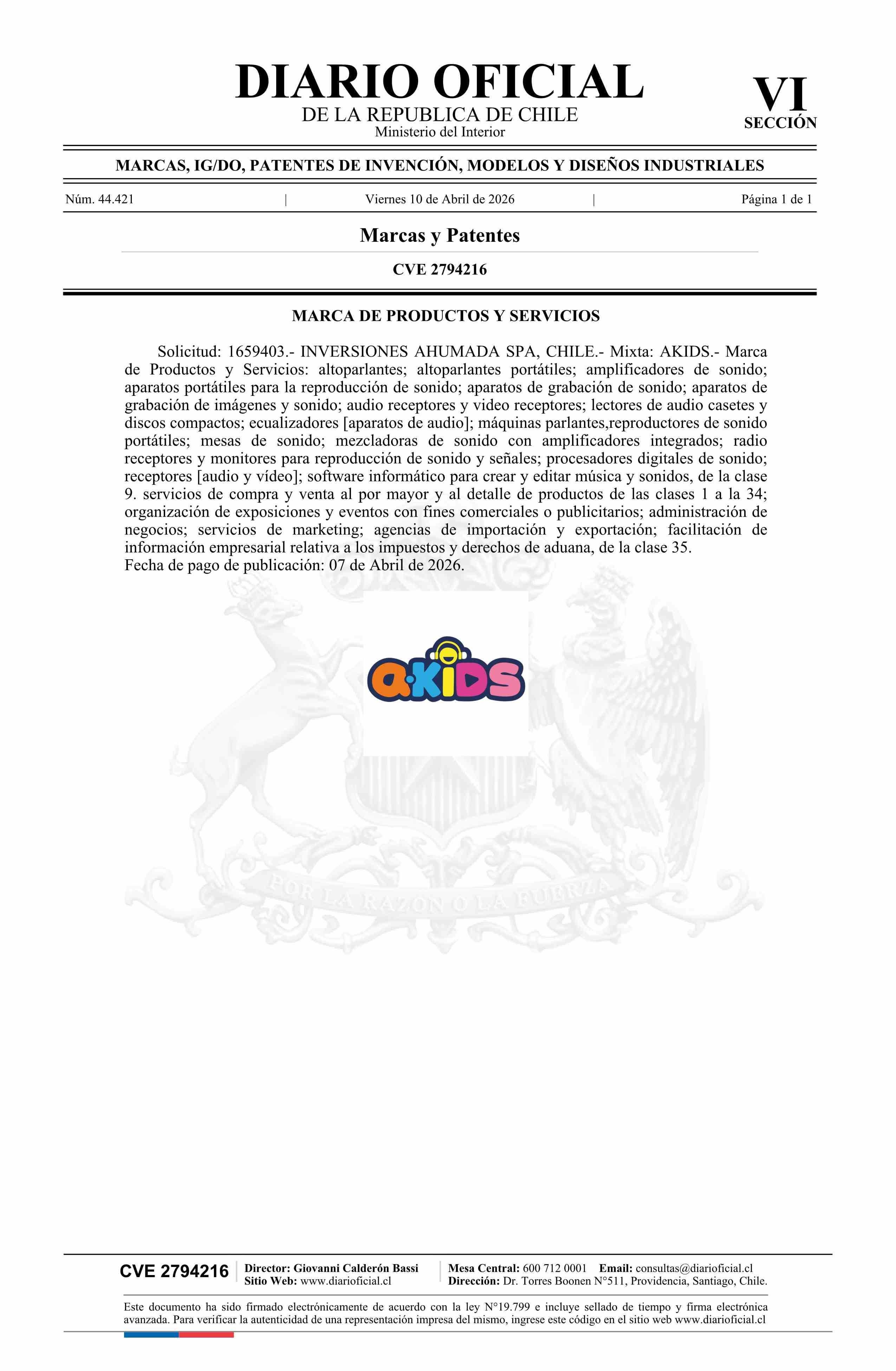 Solicitud número 1659403.- AKIDS 10-04-2026 Diario Oficial Edición Electrónica |
