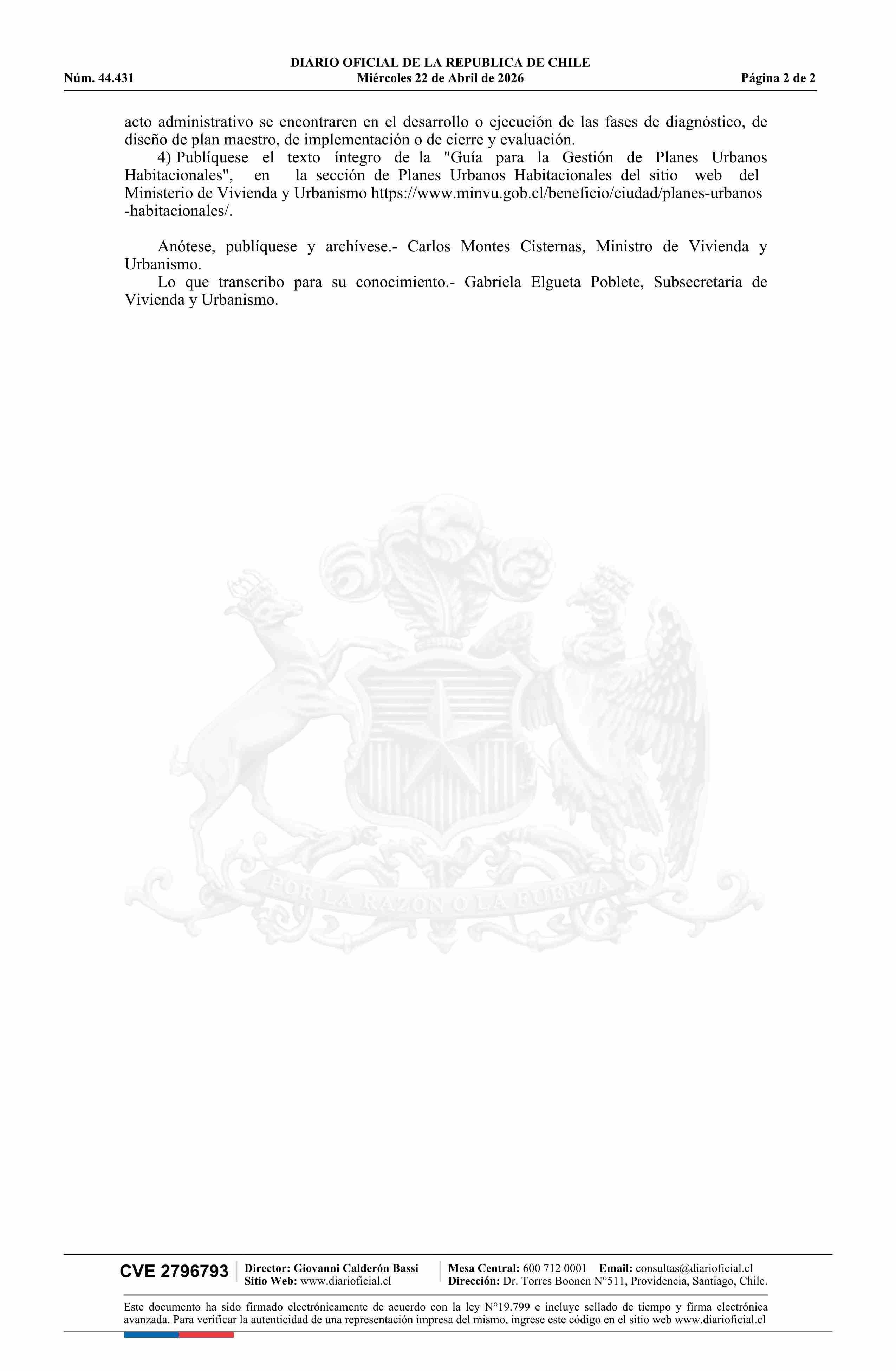 Resolución exenta número 381, de 2026.- Aprueba guía para la gestión de planes urbanos habitacionales 22-04-2026 Diario Oficial Edición Electrónica |