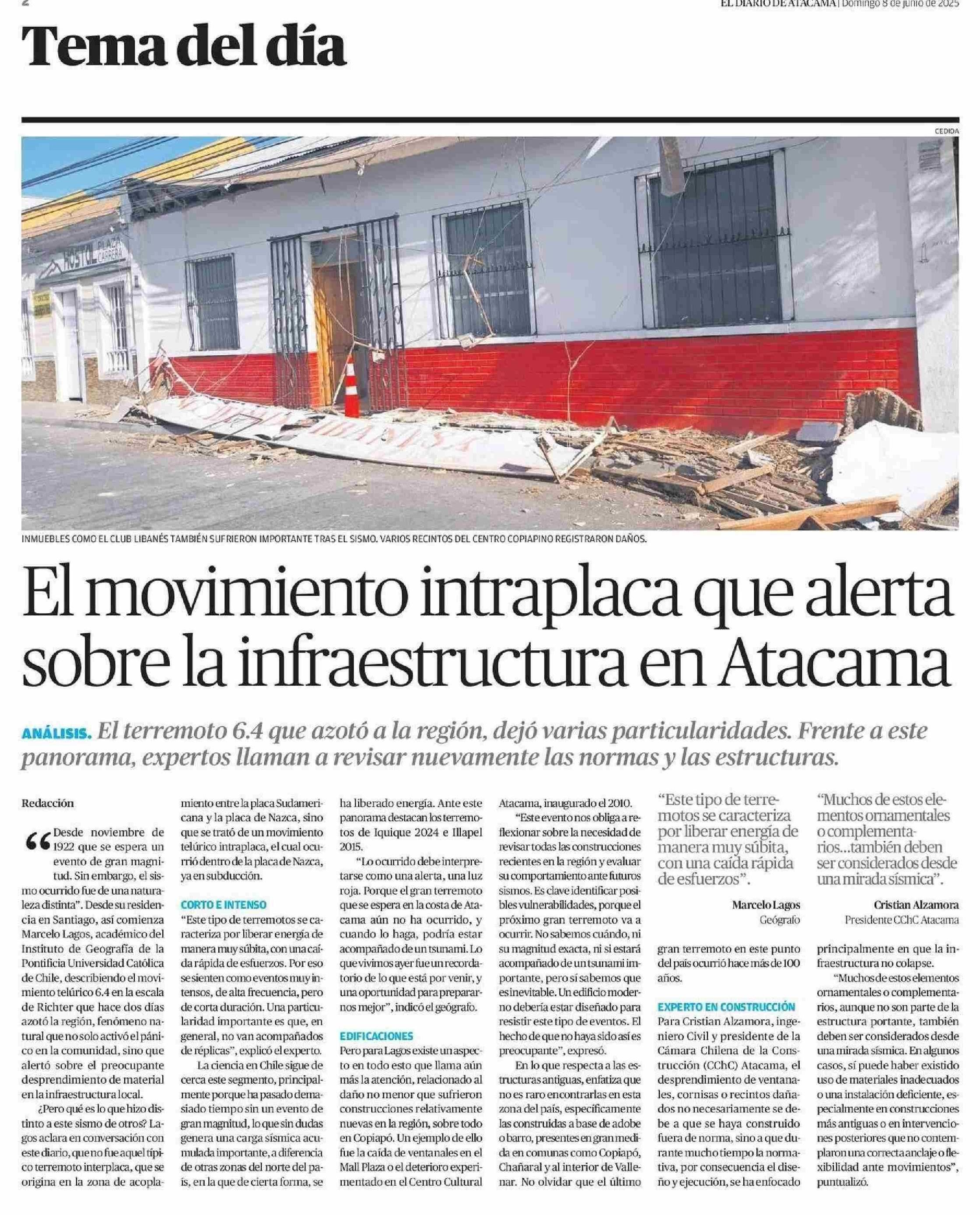 El movimiento intraplaca que alerta sobre la infraestructura en Atacama 08-06-2025 El Diario de Atacama |