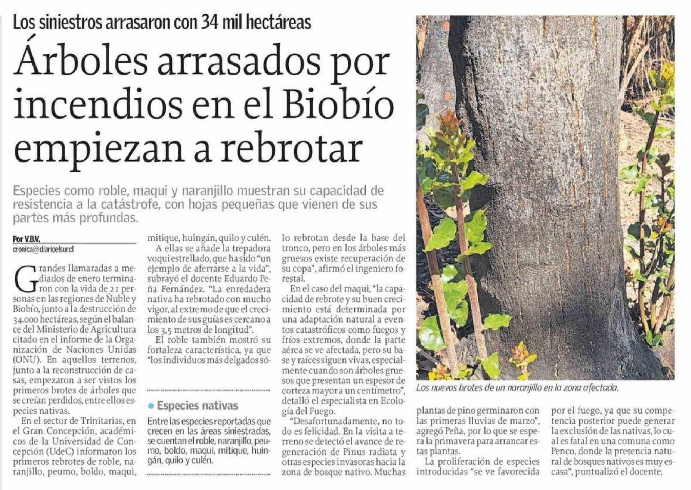 | Título: | Árboles arrasados por incendios en el Biobío empiezan a rebrotar |
