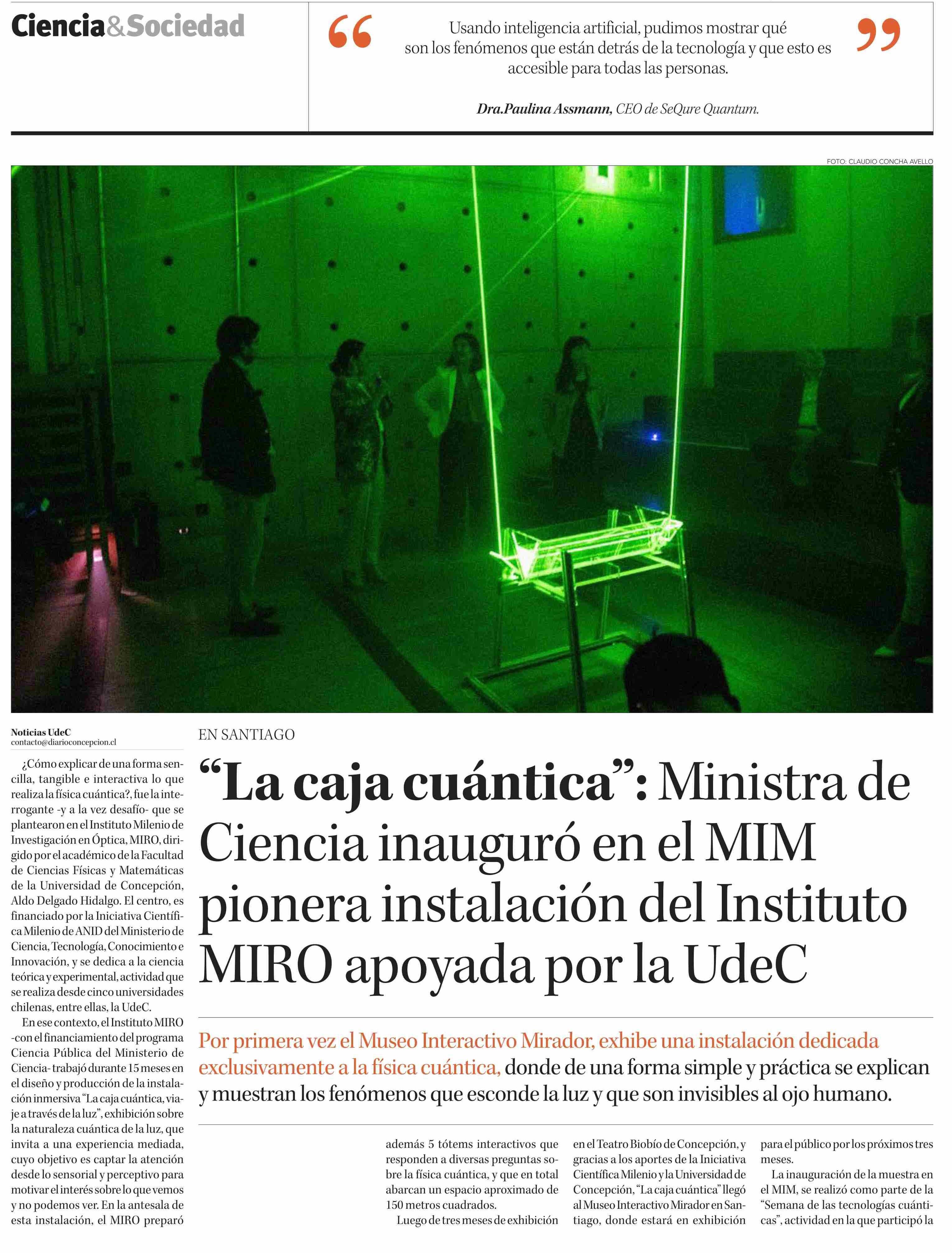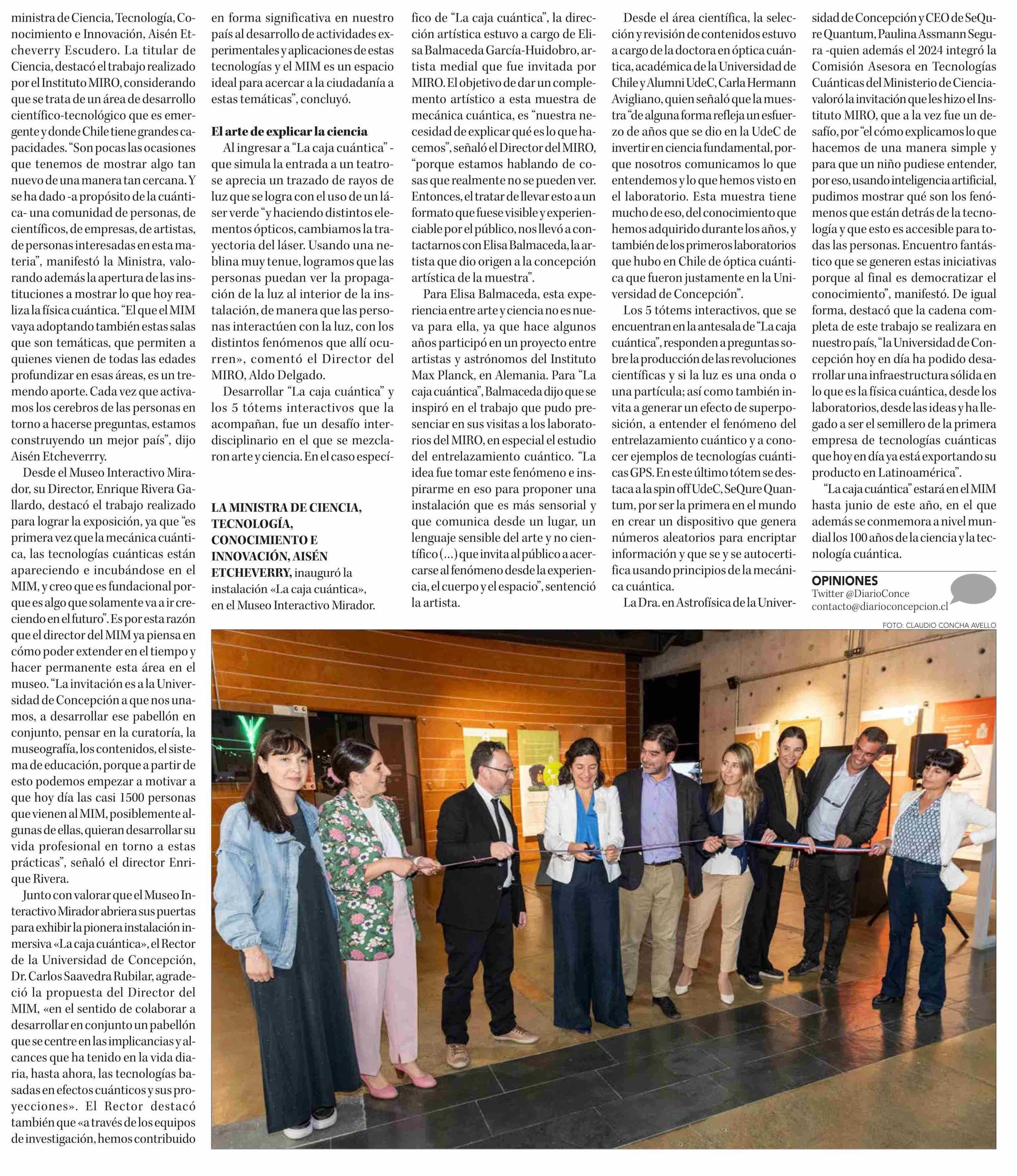 “La caja cuántica”: Ministra de Ciencia inauguró en el MIM pionera instalación del Instituto MIRO apoyada por la UdeC 05-05-2025 Diario Concepción |