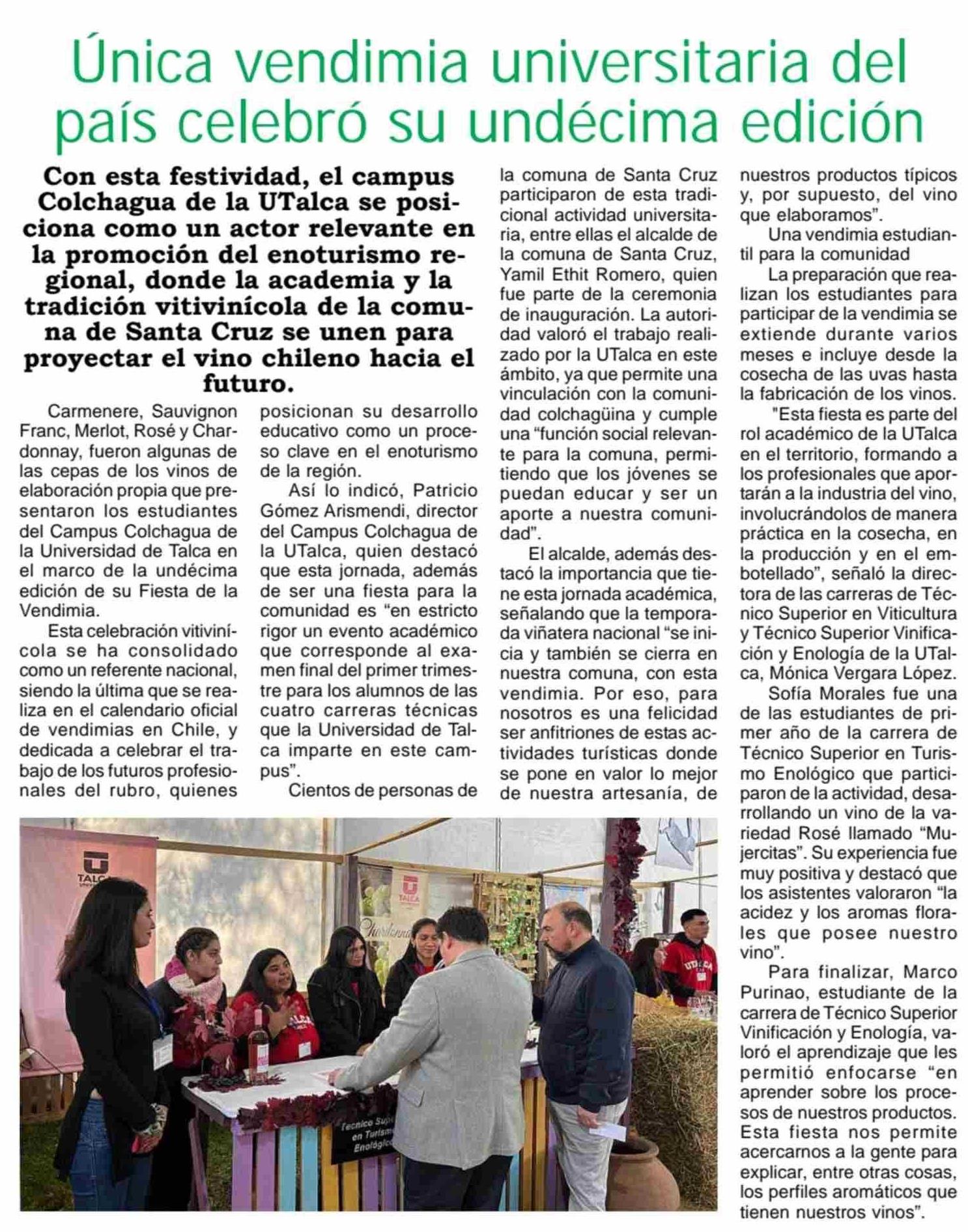 Única vendimia universitaria del país celebró su undécima edición 11-06-2025 Maule Hoy |