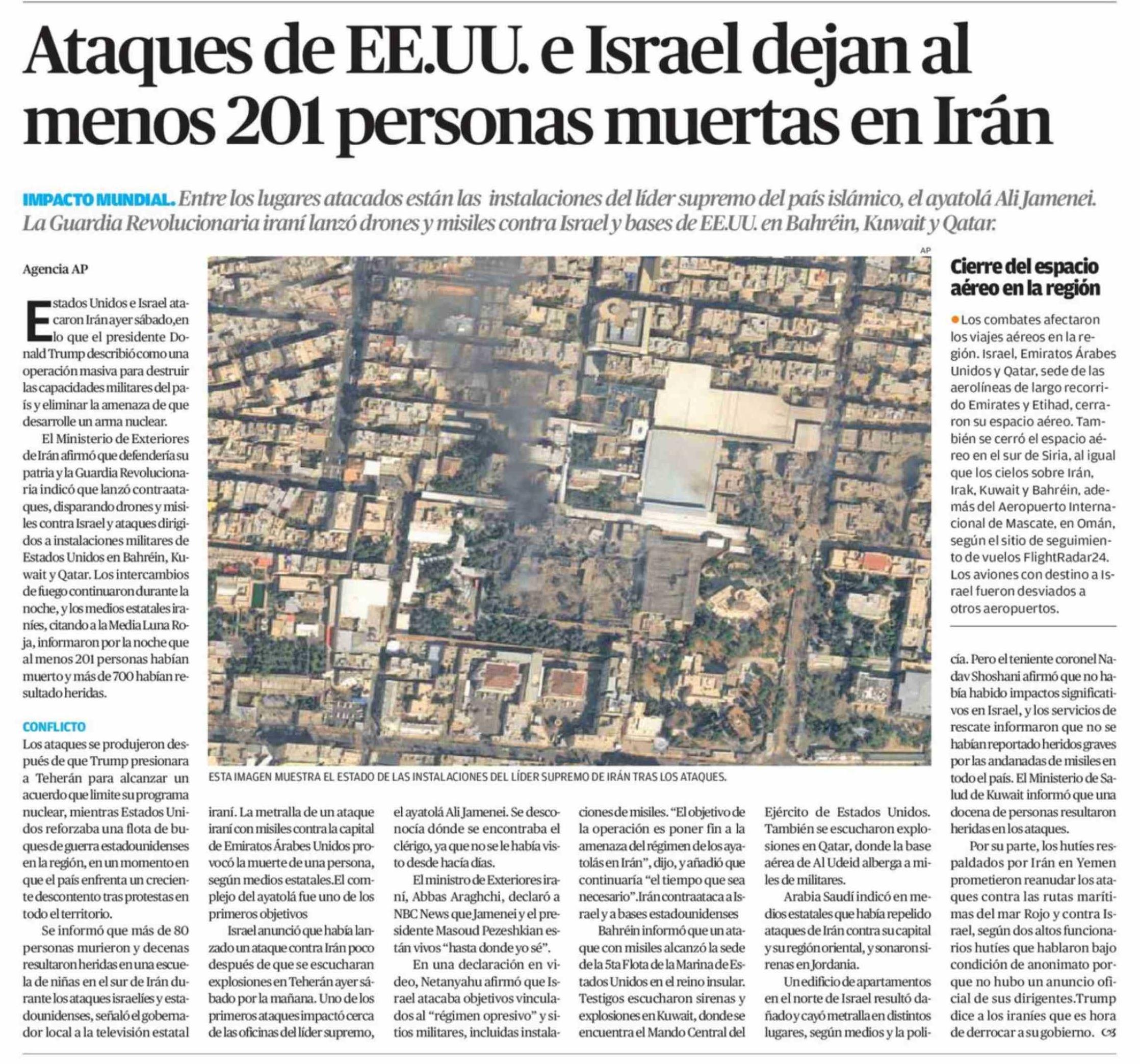Ataques de EE.UU. e Israel dejan al menos 201 personas muertas en Irán 01-03-2026 El Mercurio de Calama |