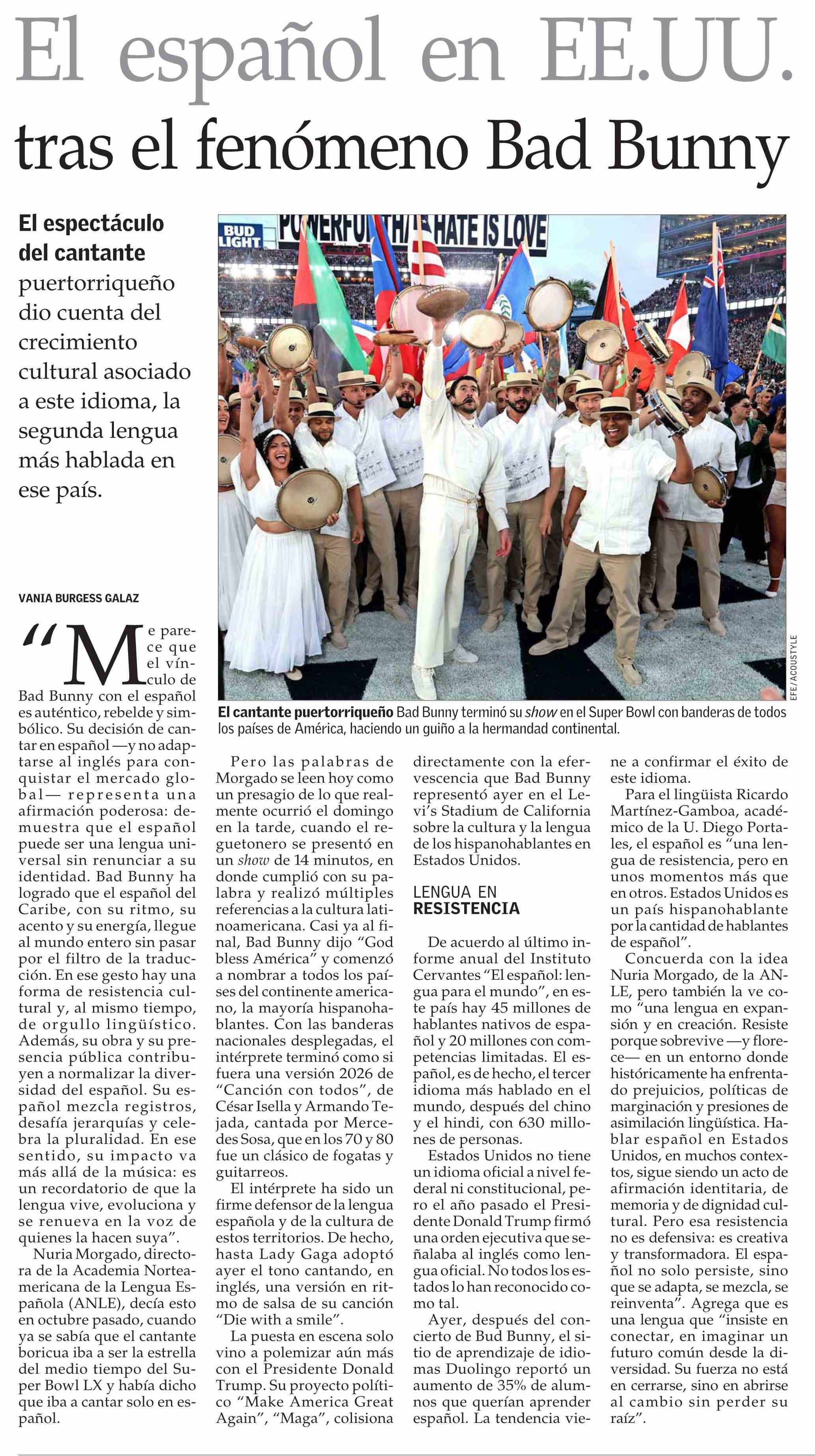 El español en EE.UU. tras el fenómeno Bad Bunny 10-02-2026 El Mercurio |