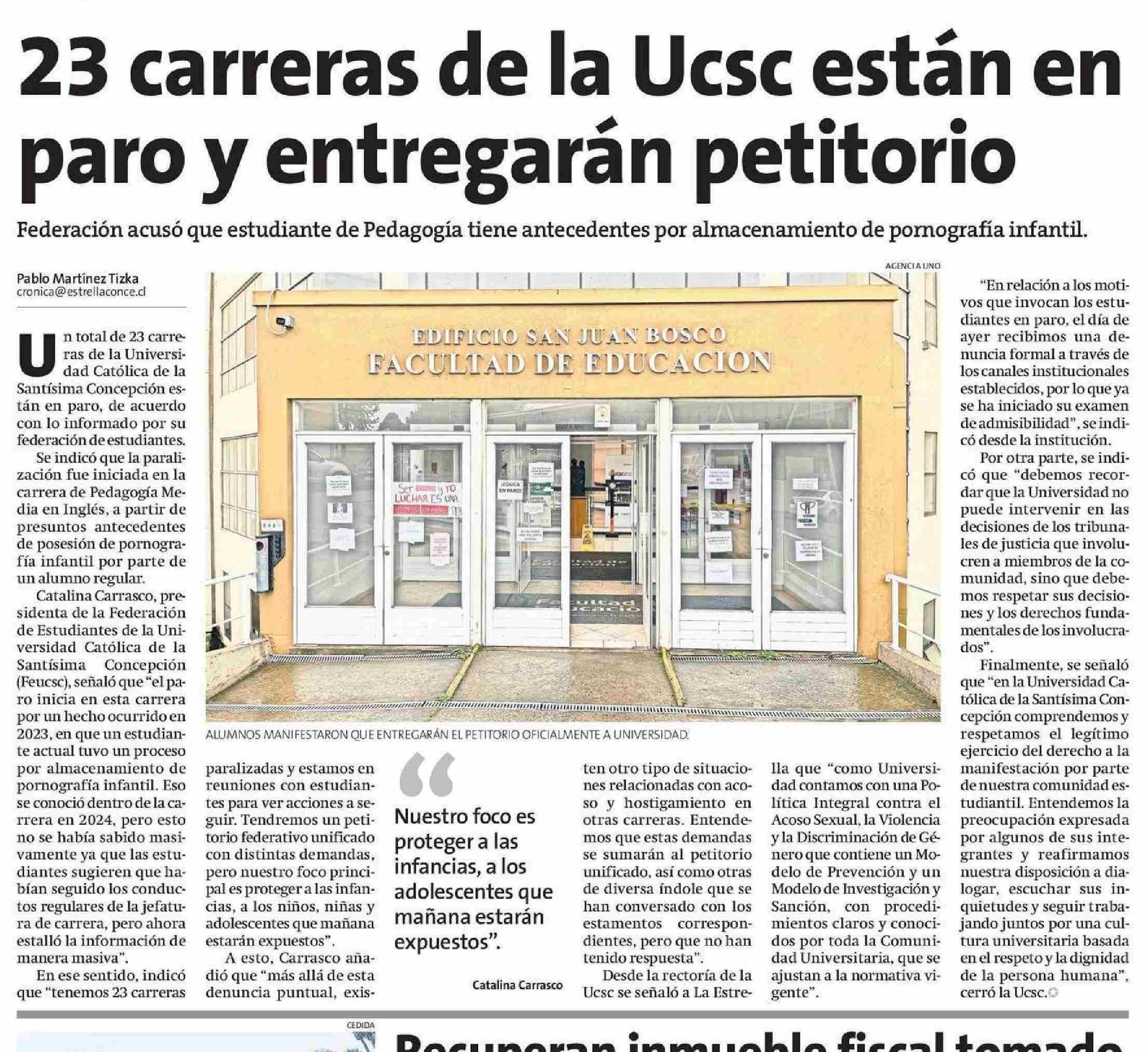 23 Carreras de la Ucsc están en paro y entregarán petitorio 08-05-2025 La Estrella de Concepción |