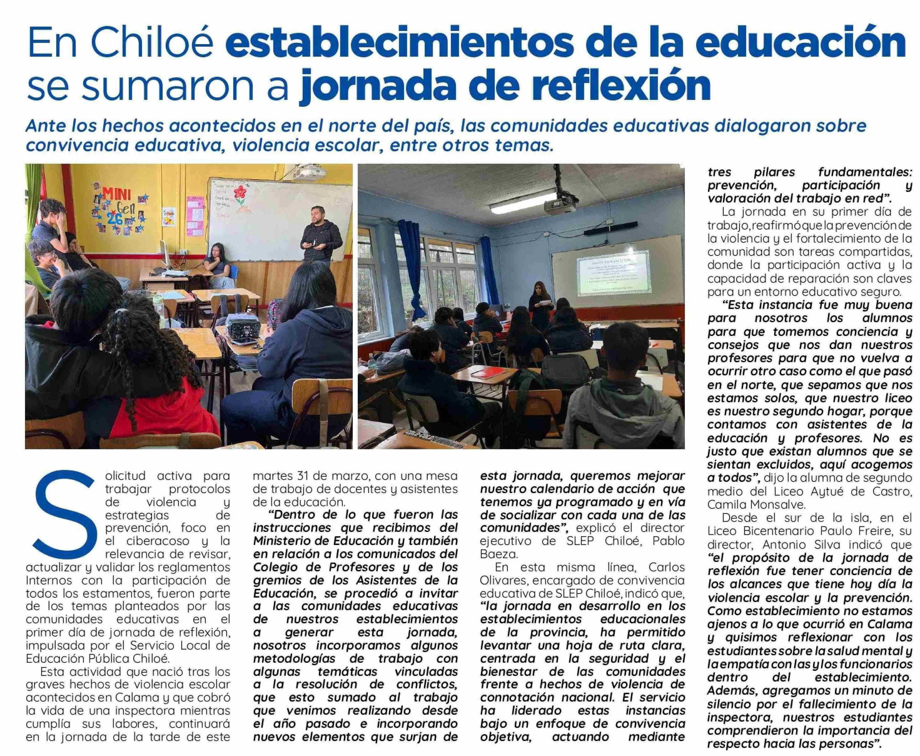 En Chiloé establecimientos de la educación se sumaron a jornada de reflexión 01-04-2026 El Insular |