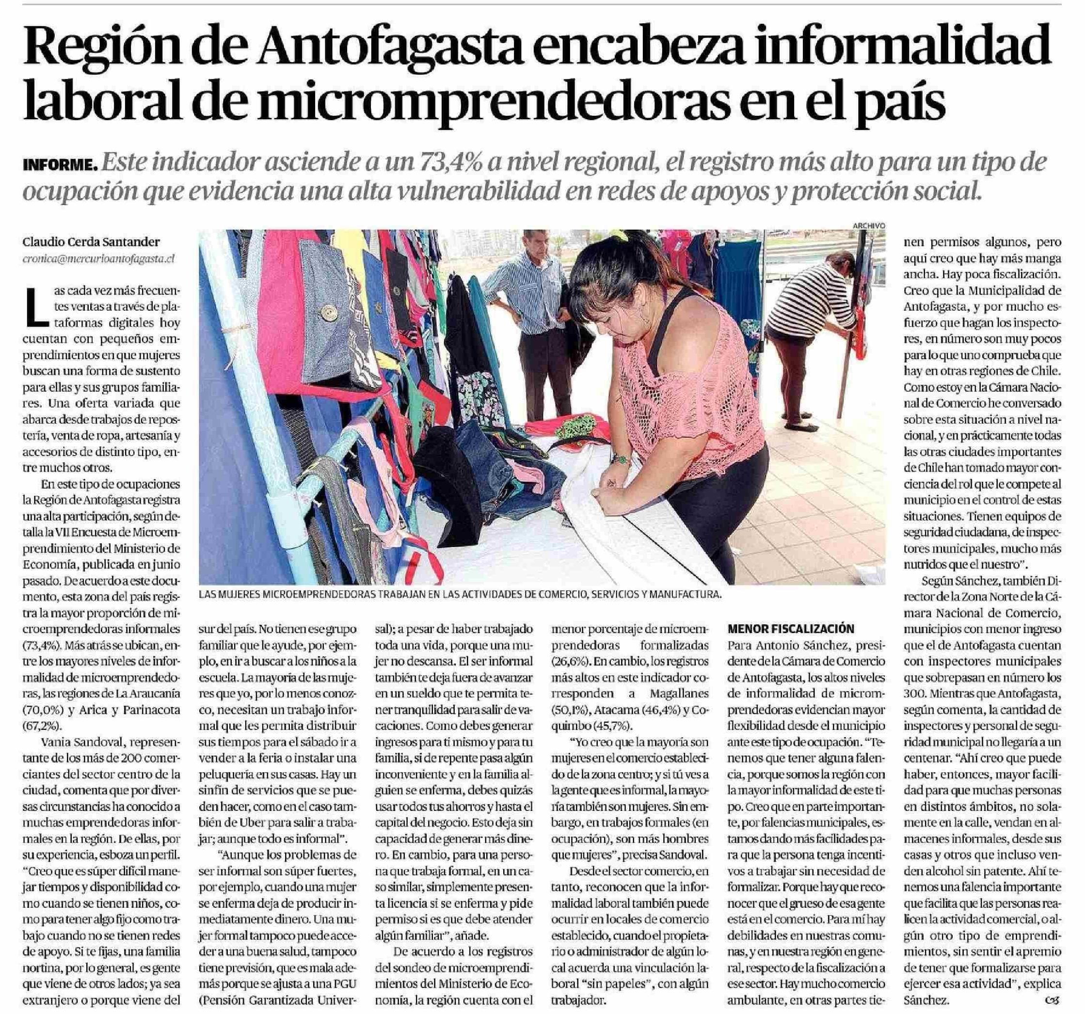 Región de Antofagasta encabeza informalidad laboral de micromprendedoras en el país 28-11-2023 El Mercurio de Antofagasta |