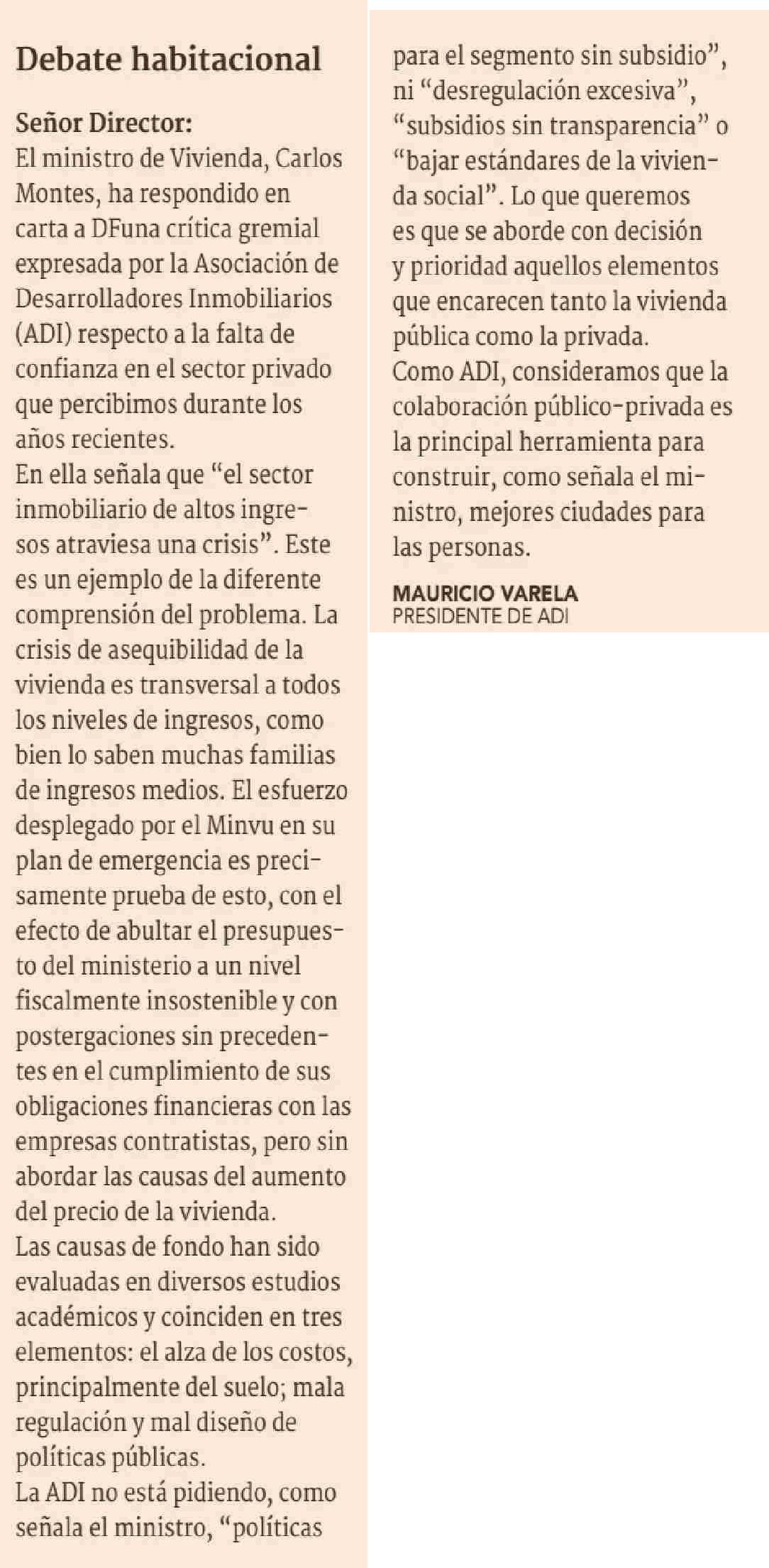 Cartas: Debate habitacional 15-01-2026 Diario Financiero |