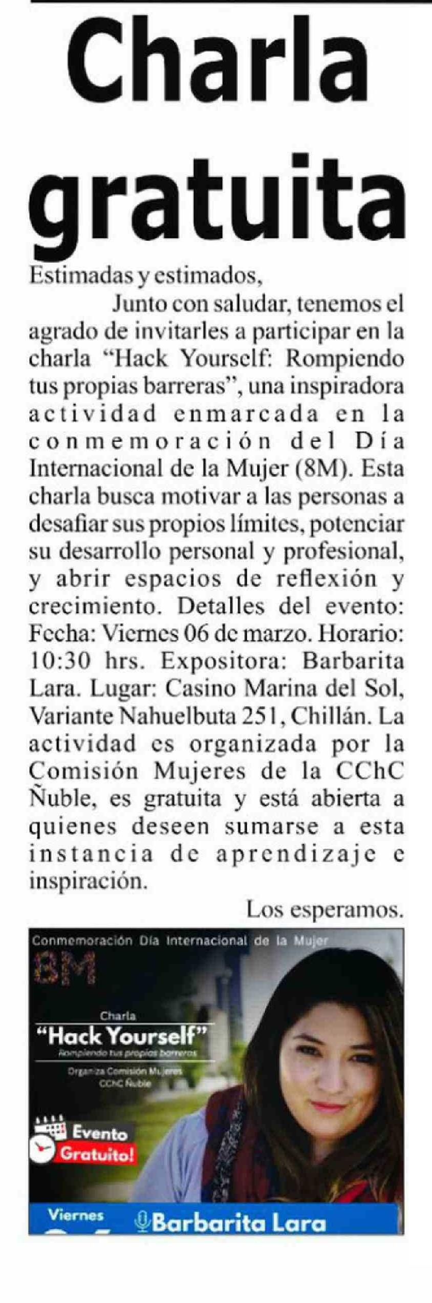 | Fecha: | 06-03-2026 | Sector: | Noticia general | Región: | Región del Ñuble |