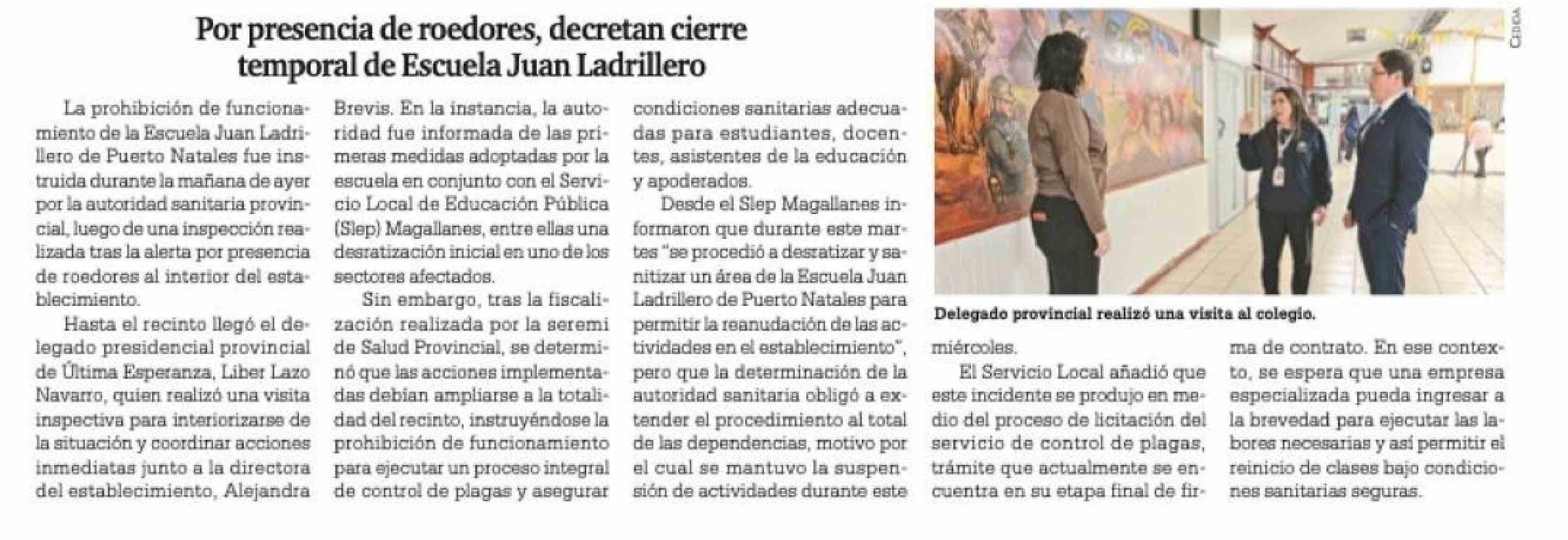 Título: Por presencia de roedores, decretan cierre temporal de Escuela Juan Ladrillero