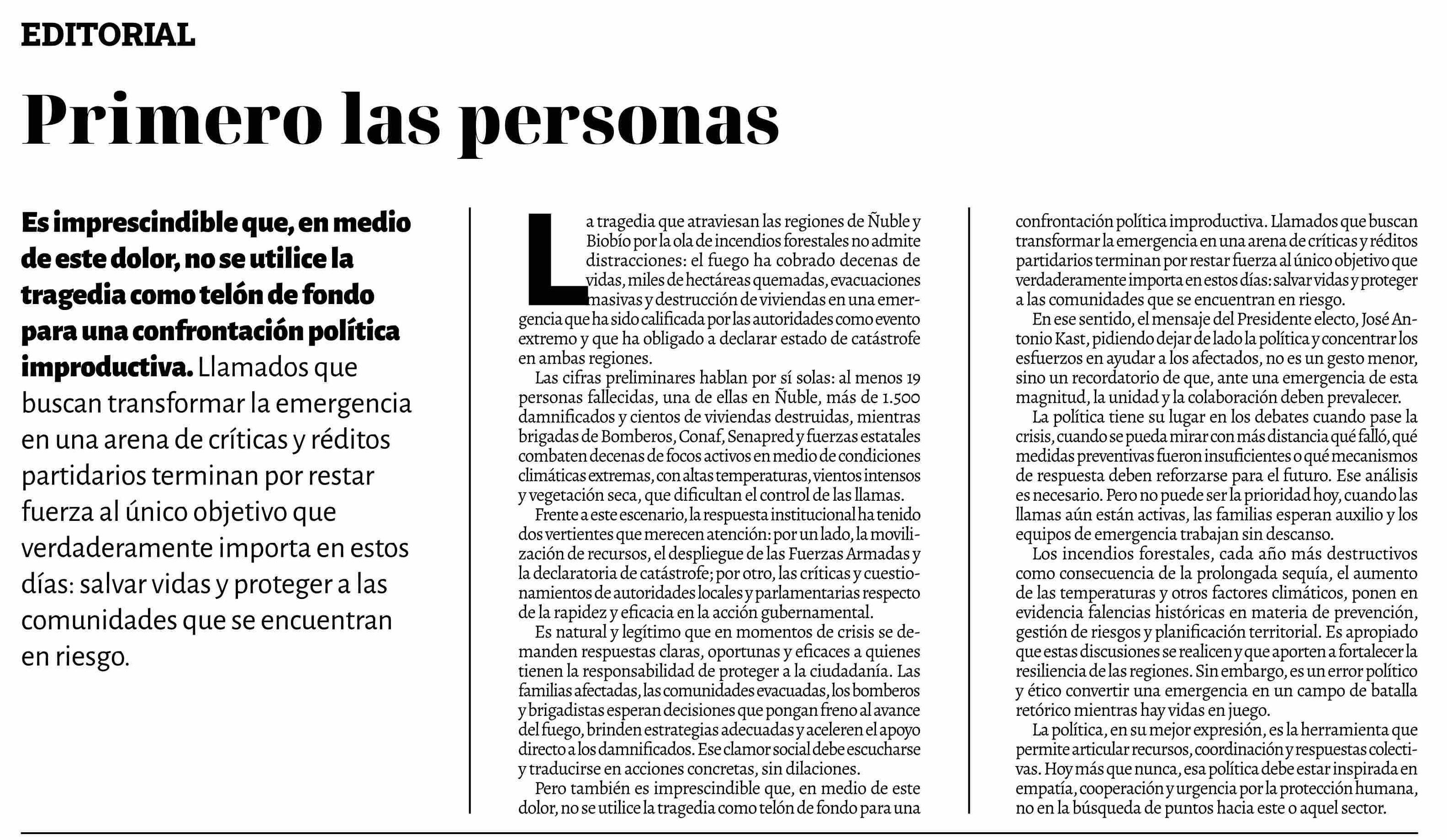 Editorial: Primero las personas 19-01-2026 La Discusión |