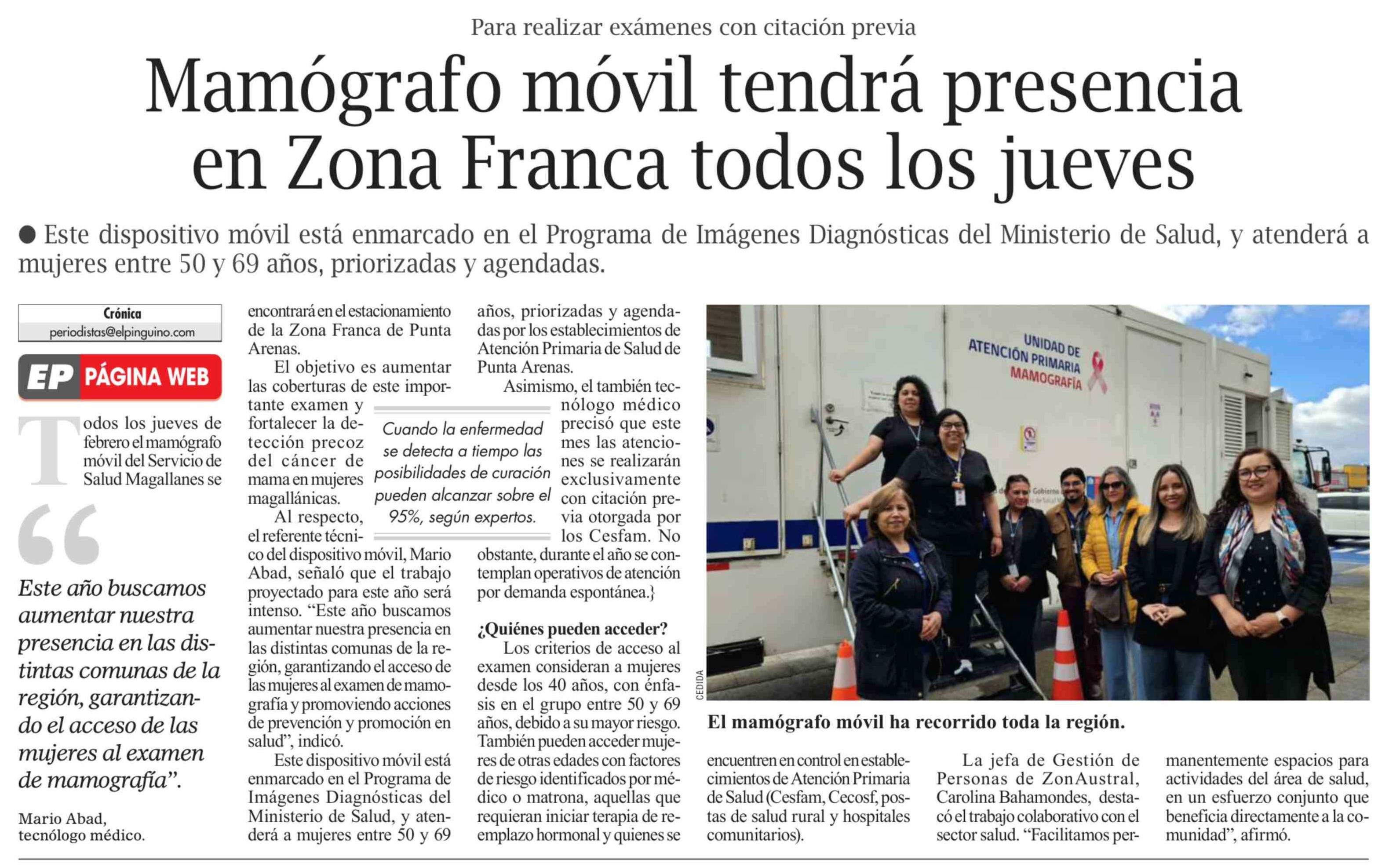 Título: Mamógrafo móvil tendrá presencia en Zona Franca todos los jueves