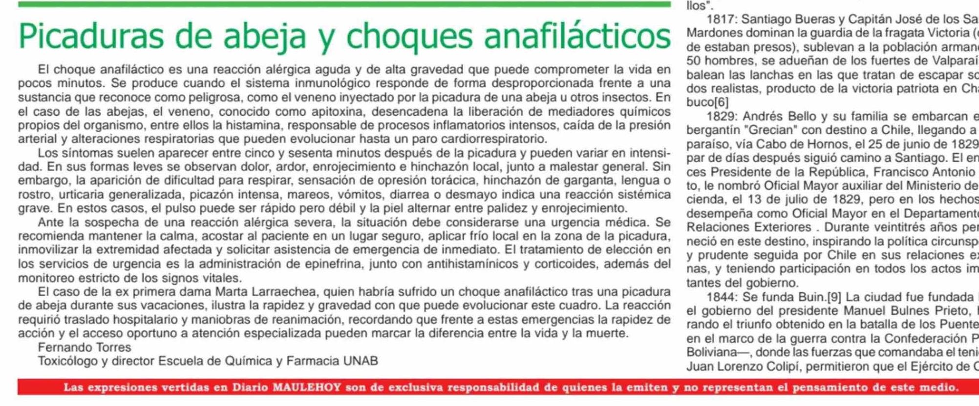Picaduras de abeja y choques anafilácticos 14-02-2026 Maule Hoy |