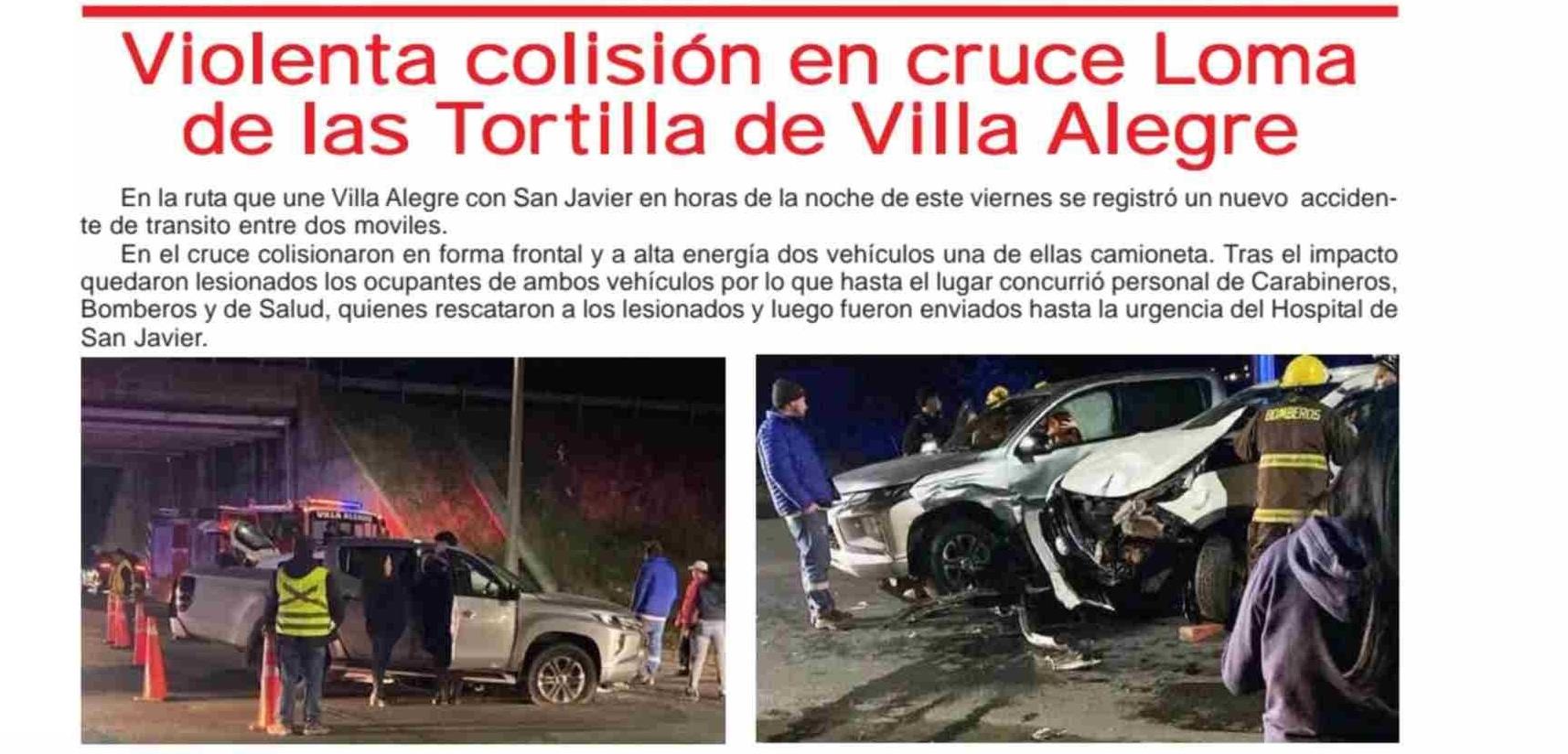 | Título: | Violenta colisión en cruce Loma de las Tortilla de Villa Alegre |