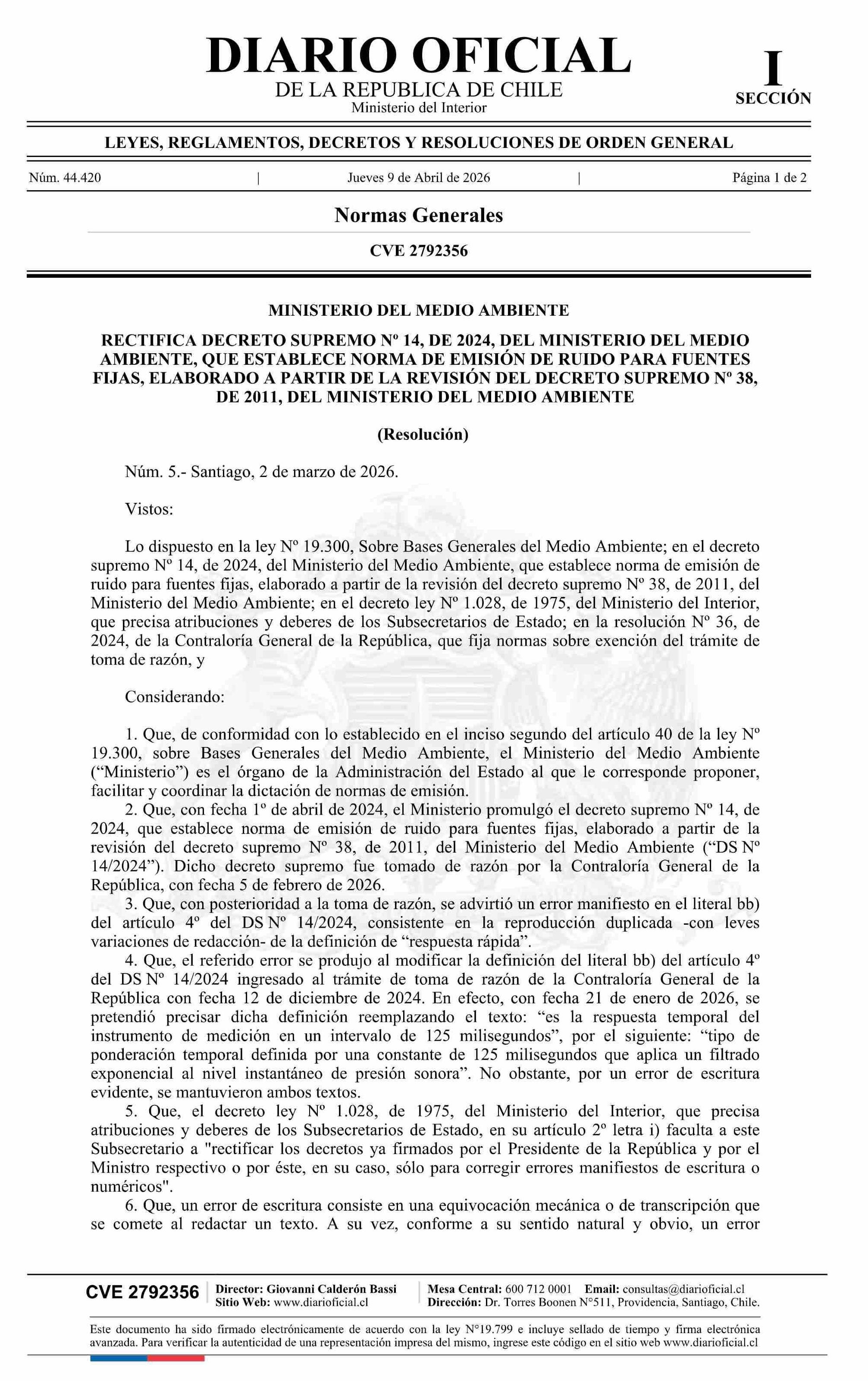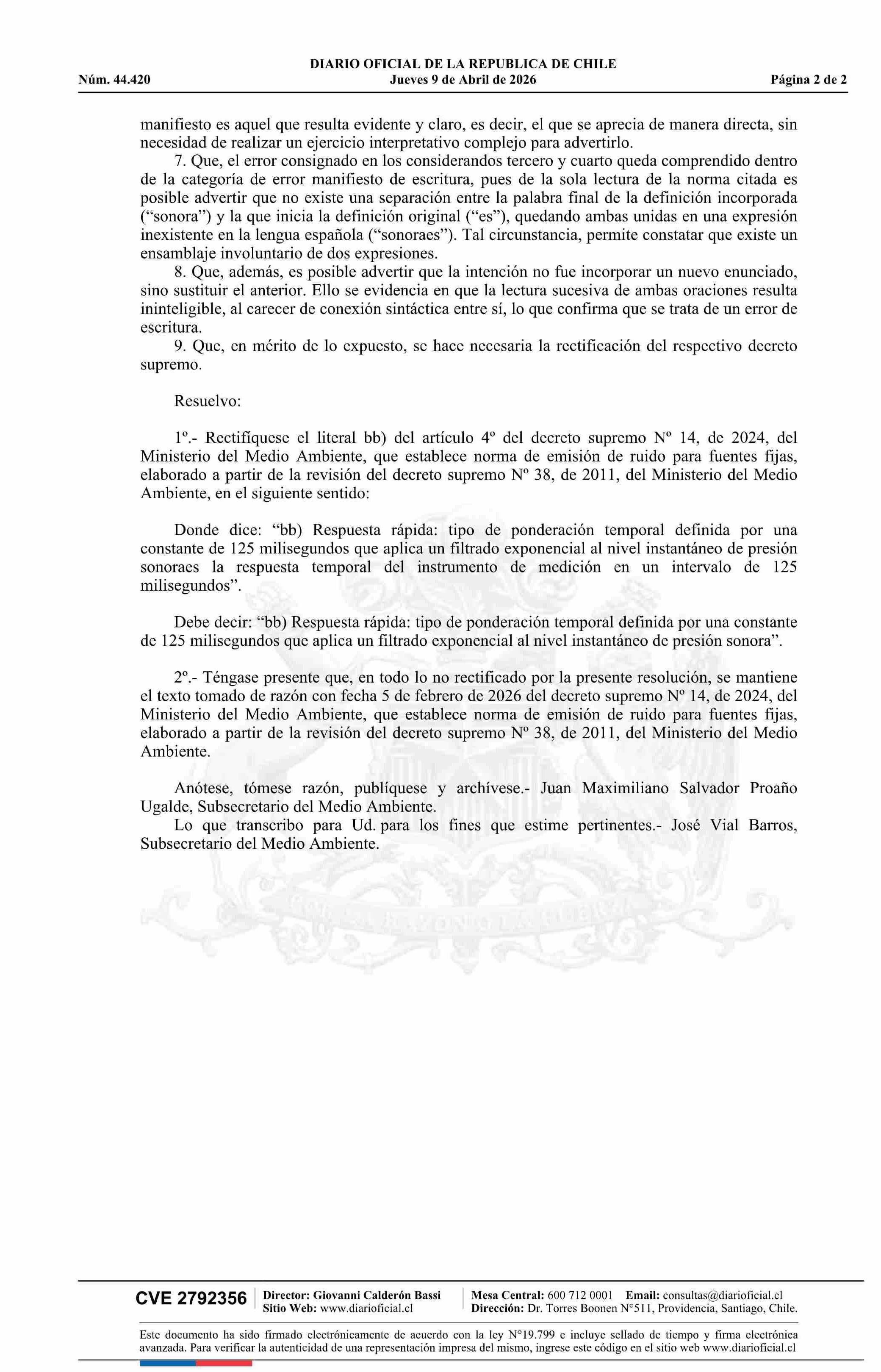 MINISTERIO DEL MEDIO AMBIENTE 09-04-2026 Diario Oficial Edición Electrónica |