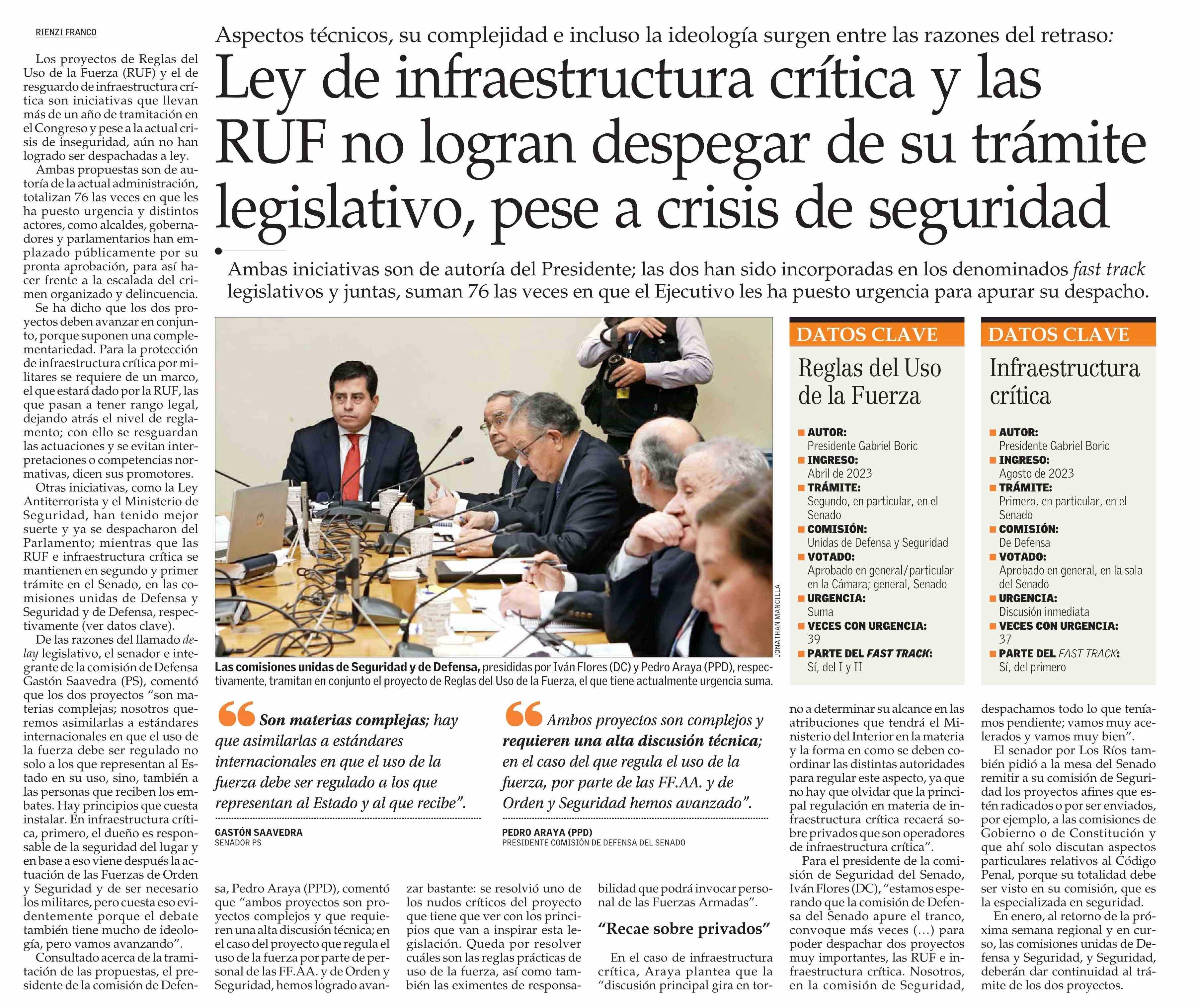 Ley de infraestructura crítica y las RUF no logran despegar de su trámite legislativo, pese a crisis de seguridad 25-12-2024 El Mercurio |