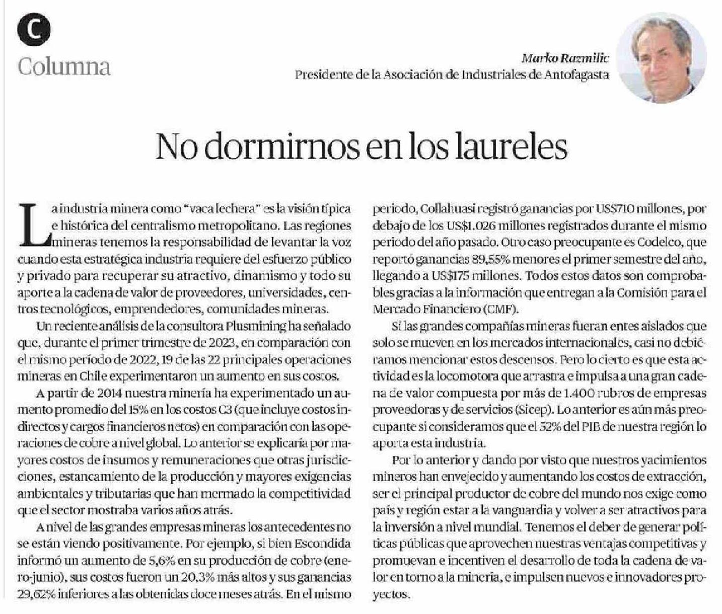 No dormirnos en los laureles 24-09-2023 El Mercurio de Calama |