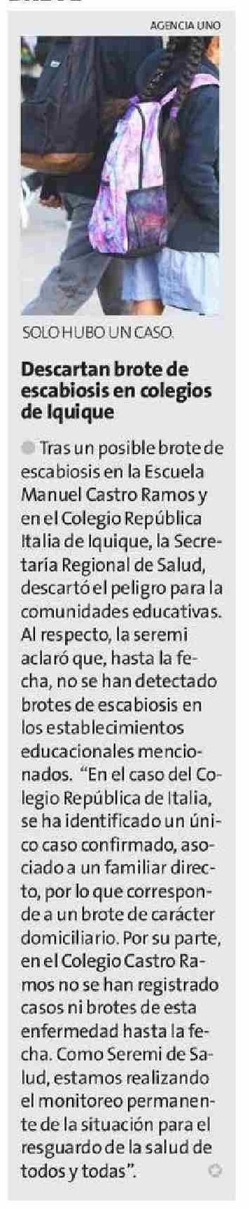Descartrabeqads escabiosis en colegios de Iquique 26-06-2025 La Estrella de Iquique |