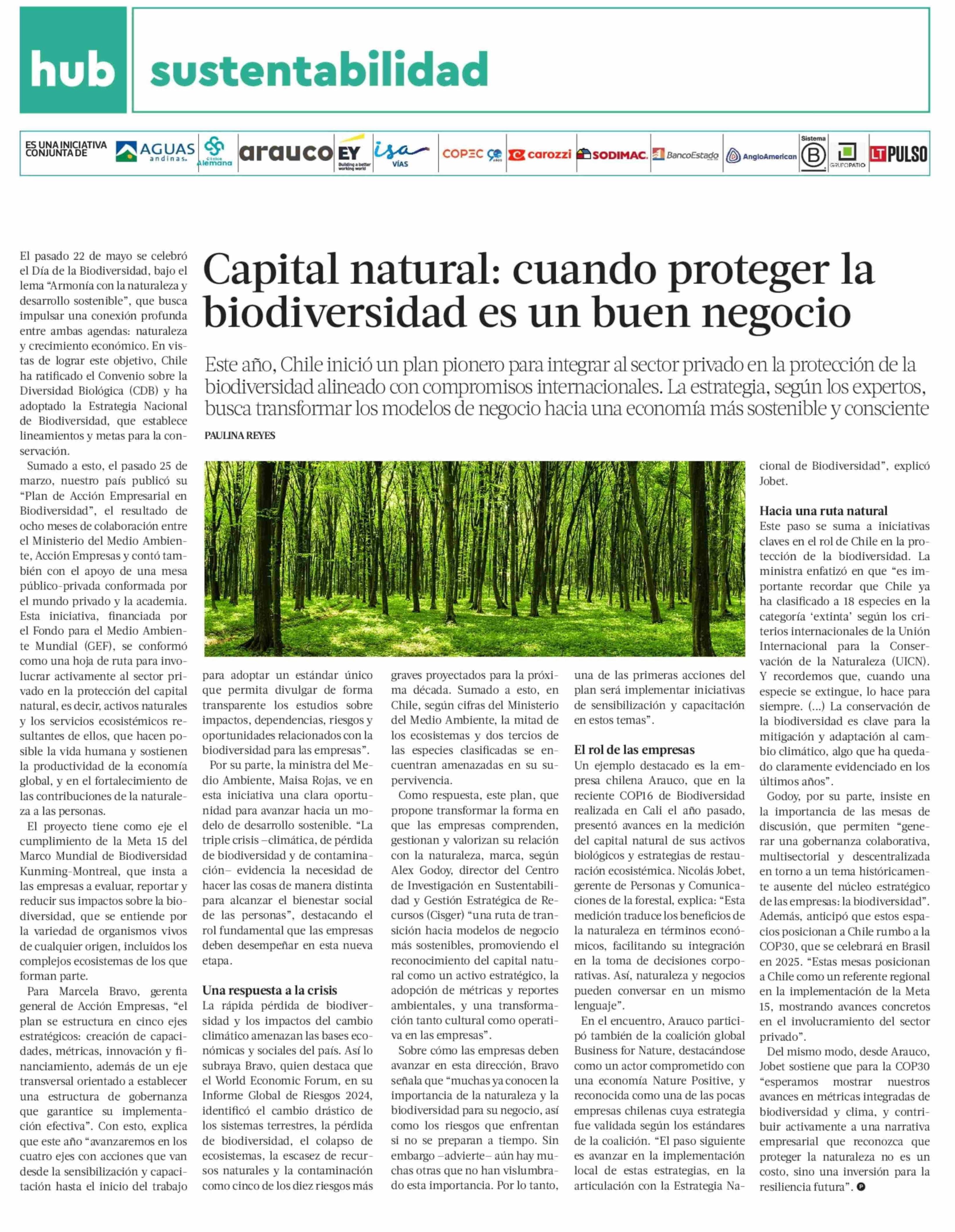Capital natural: cuando proteger la biodiversidad es un buen negocio 24-05-2025 La Tercera |