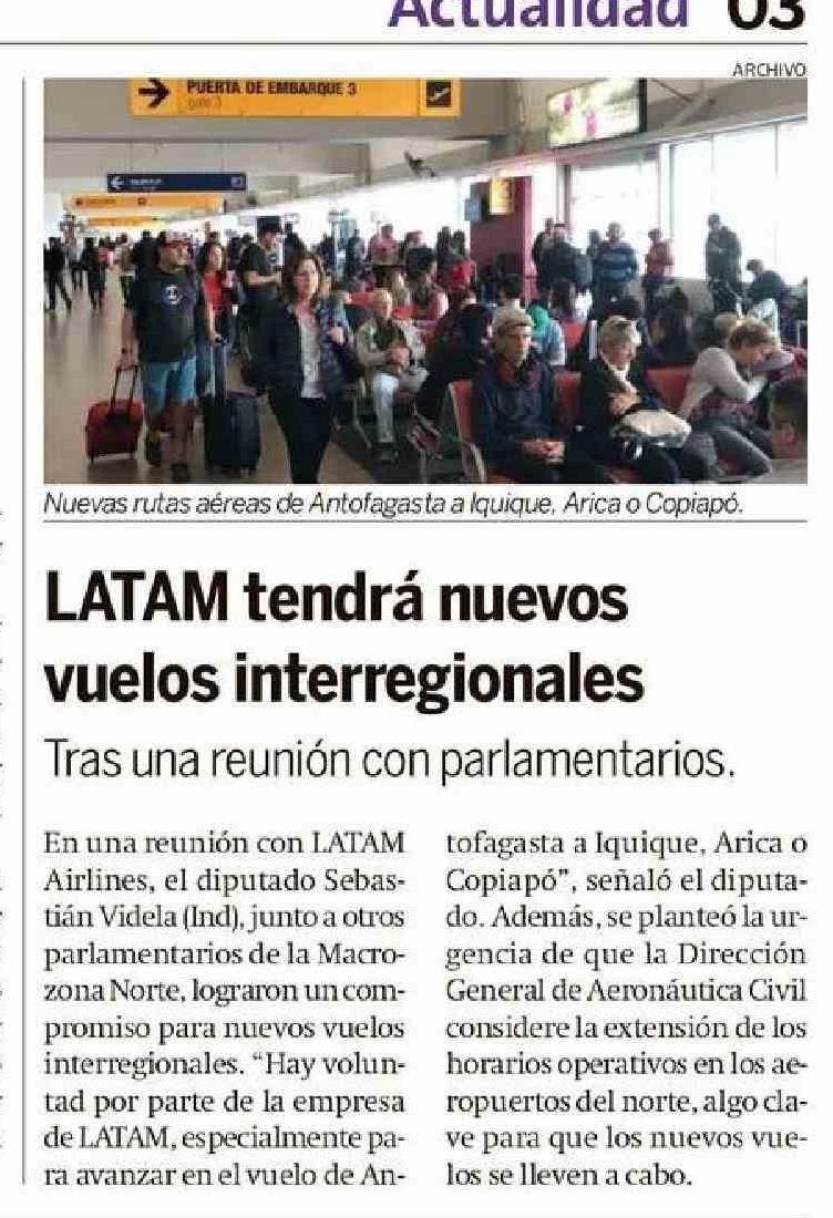 LATAM tendrá nuevos vuelos interregionales 20-05-2025 Hoy x Hoy Antofagasta |