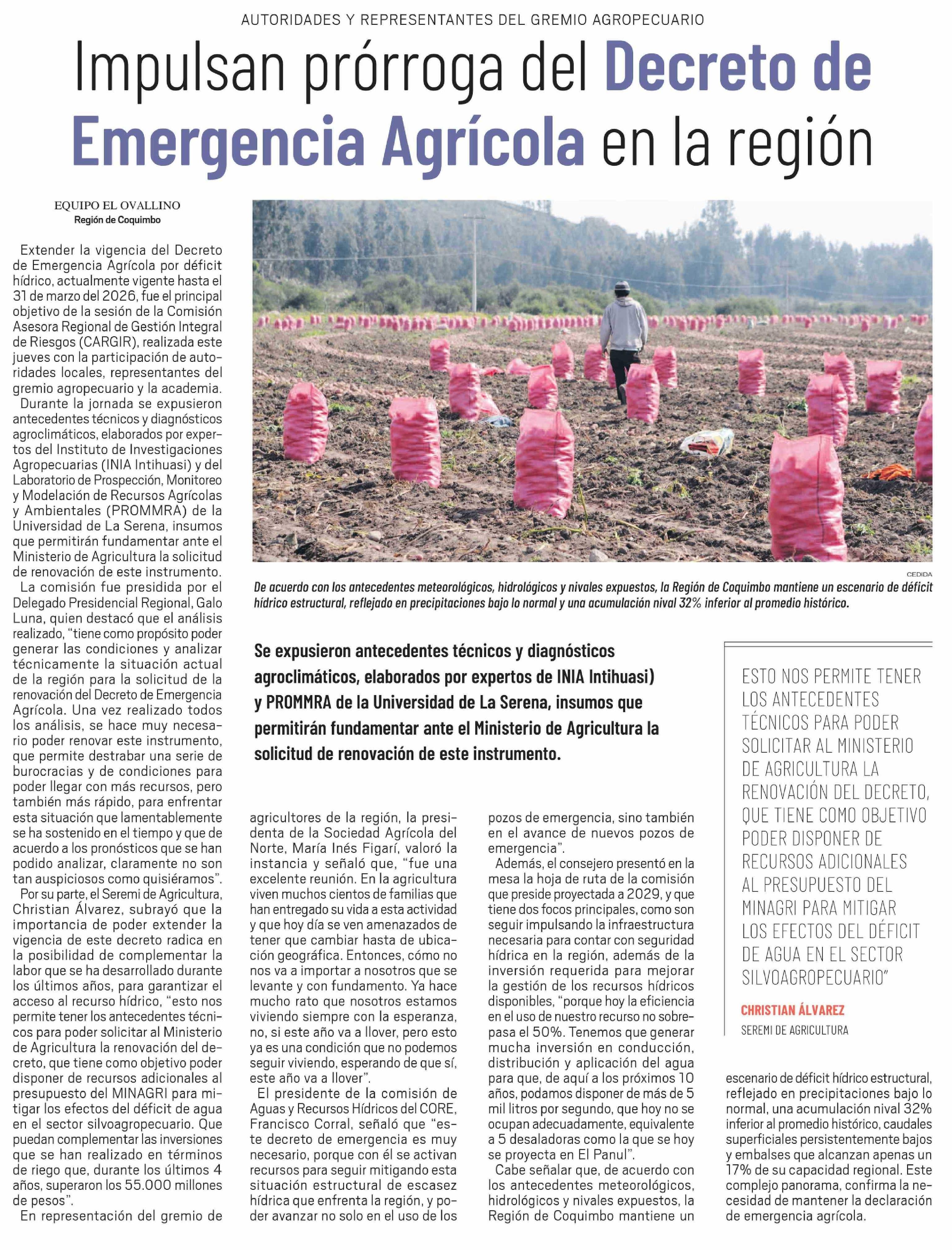 Título: Impulsan prórroga del Decreto de Emergencia Agrícola en la región