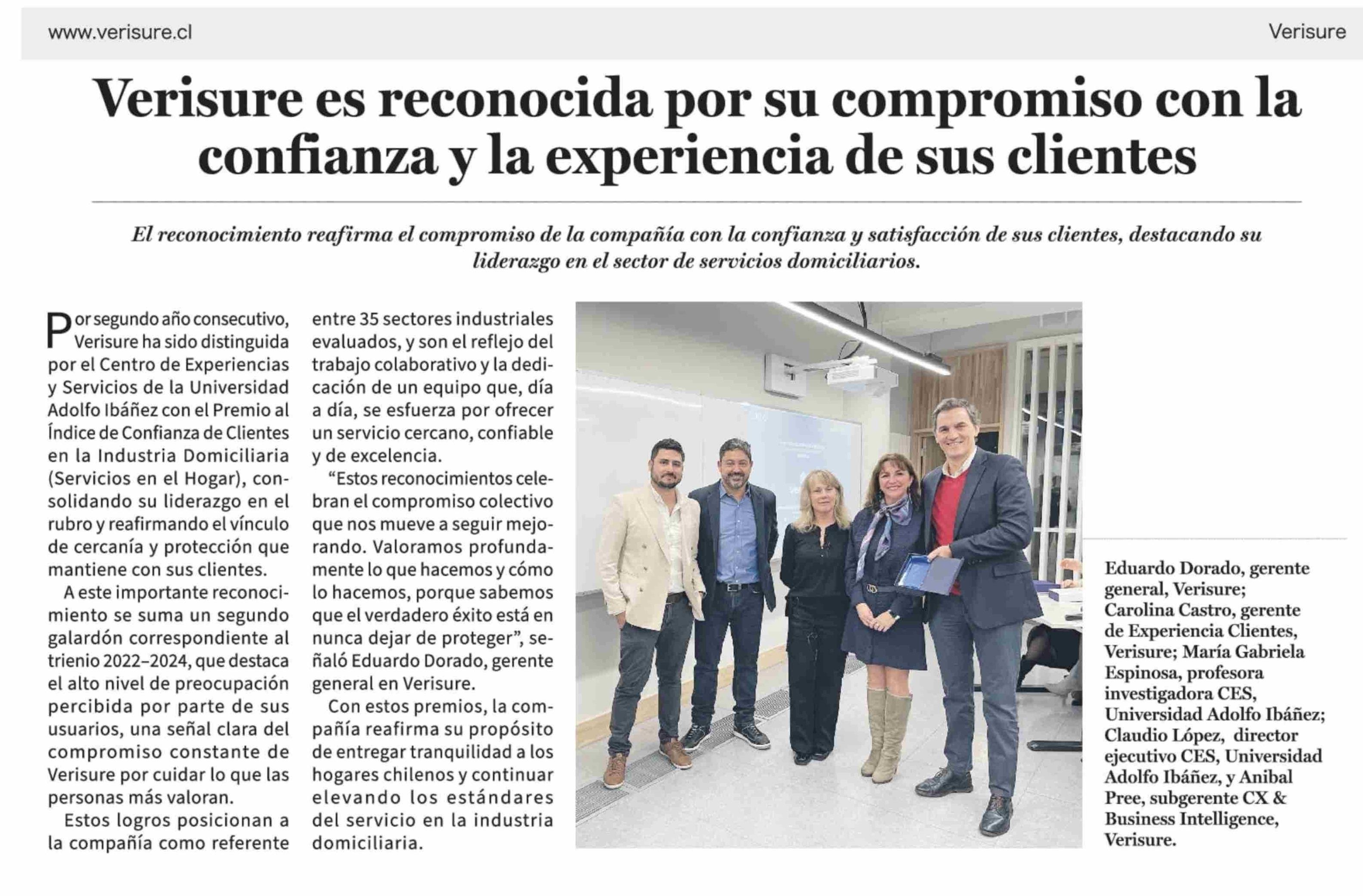 Verisure es reconocida por su compromiso con la confianza y la experiencia de sus clientes 24-05-2025 La Tercera |