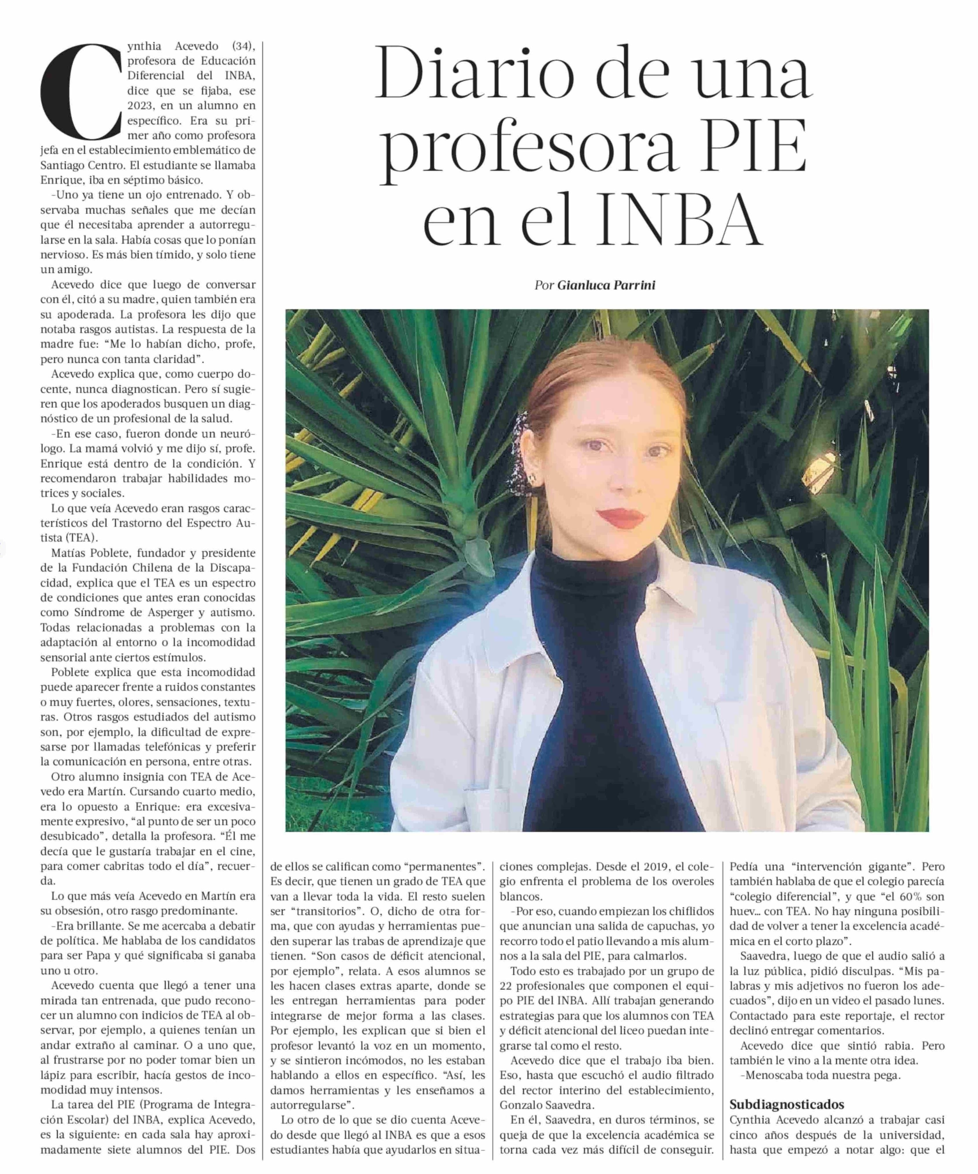 Diario de una profesora PIE en el INBA 11-05-2025 La Tercera |