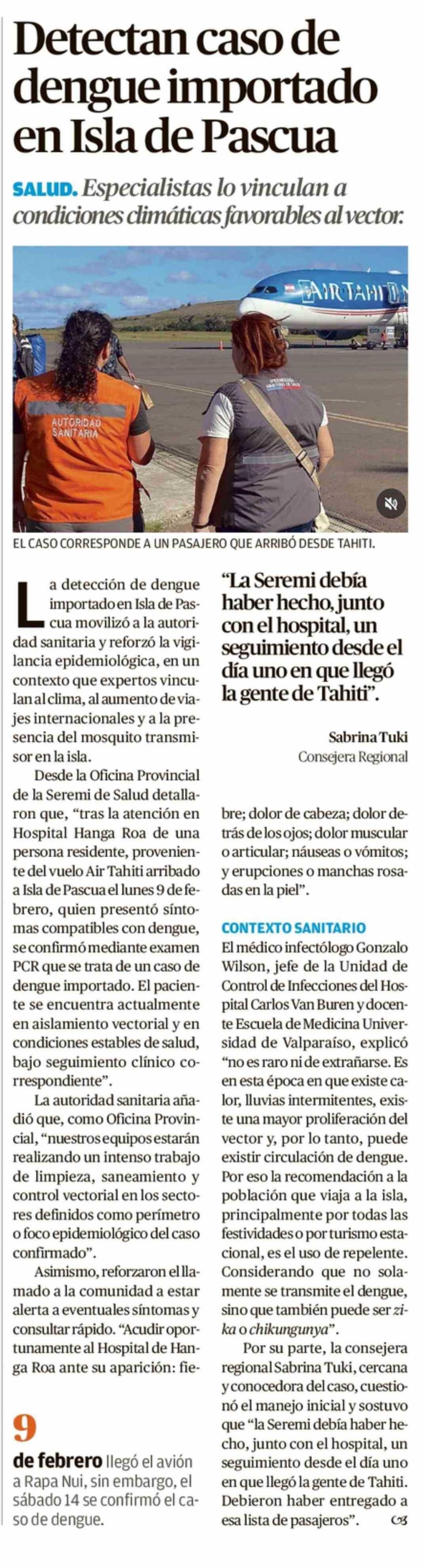 Detectan caso de dengue importado en Isla de Pascua 17-02-2026 El Mercurio de Valparaíso |