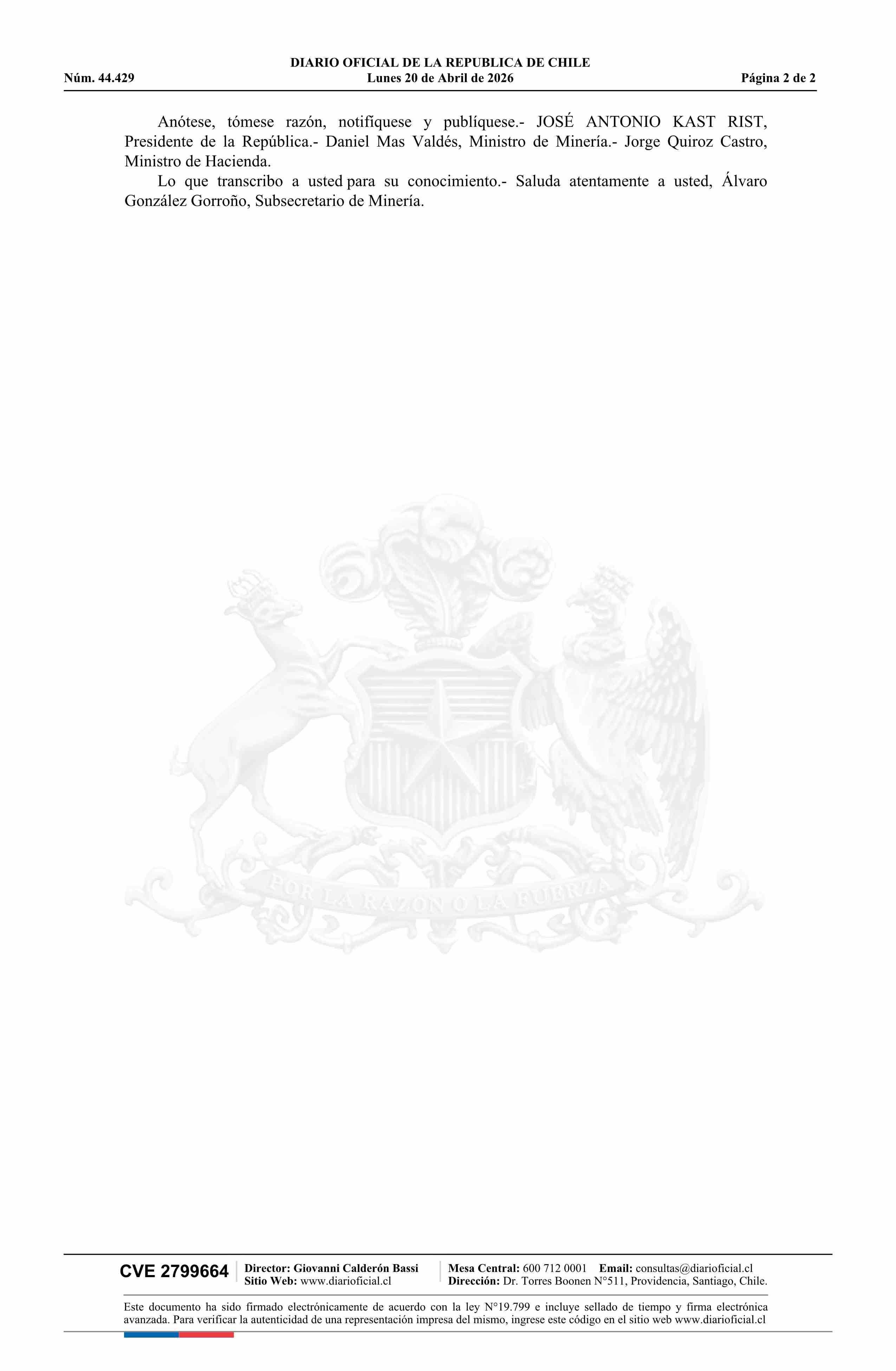 | Título: | Decreto número 14, de 2026.- Delega el ejercicio de atribuciones y facultades que indica en el Ministro de Hacienda y en el Ministro de Minería, conjuntamente |
