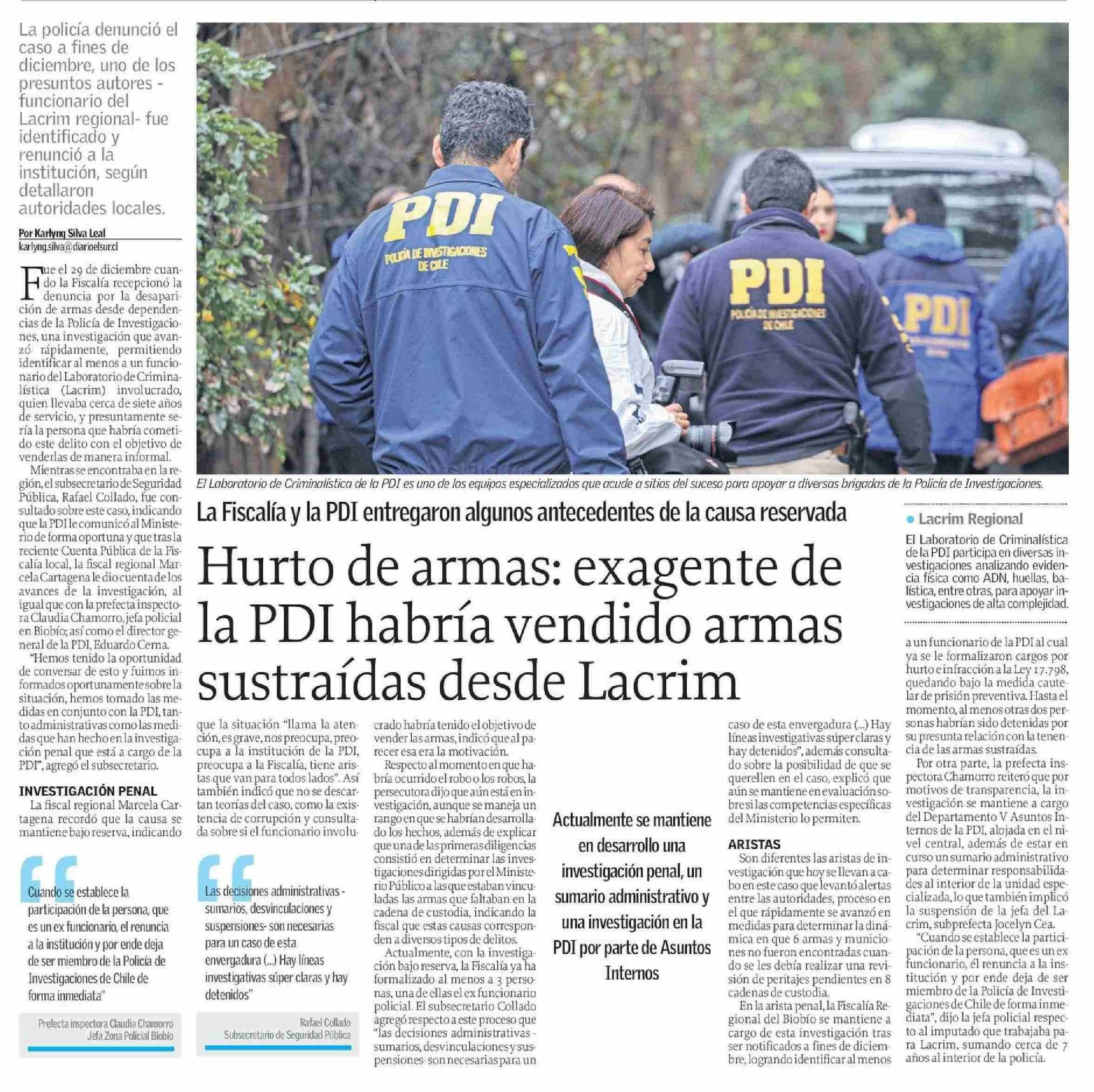 | Título: | Hurto de armas: exagente de la PDI habría vendido armas sustraídas desde Lacrim |