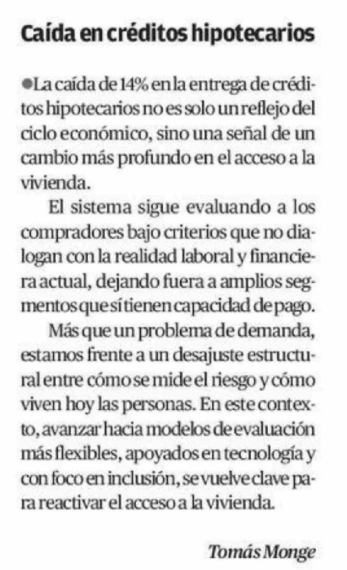 CARTAS: Caída en créditos hipotecarios 22-04-2026 El Mercurio de Antofagasta |