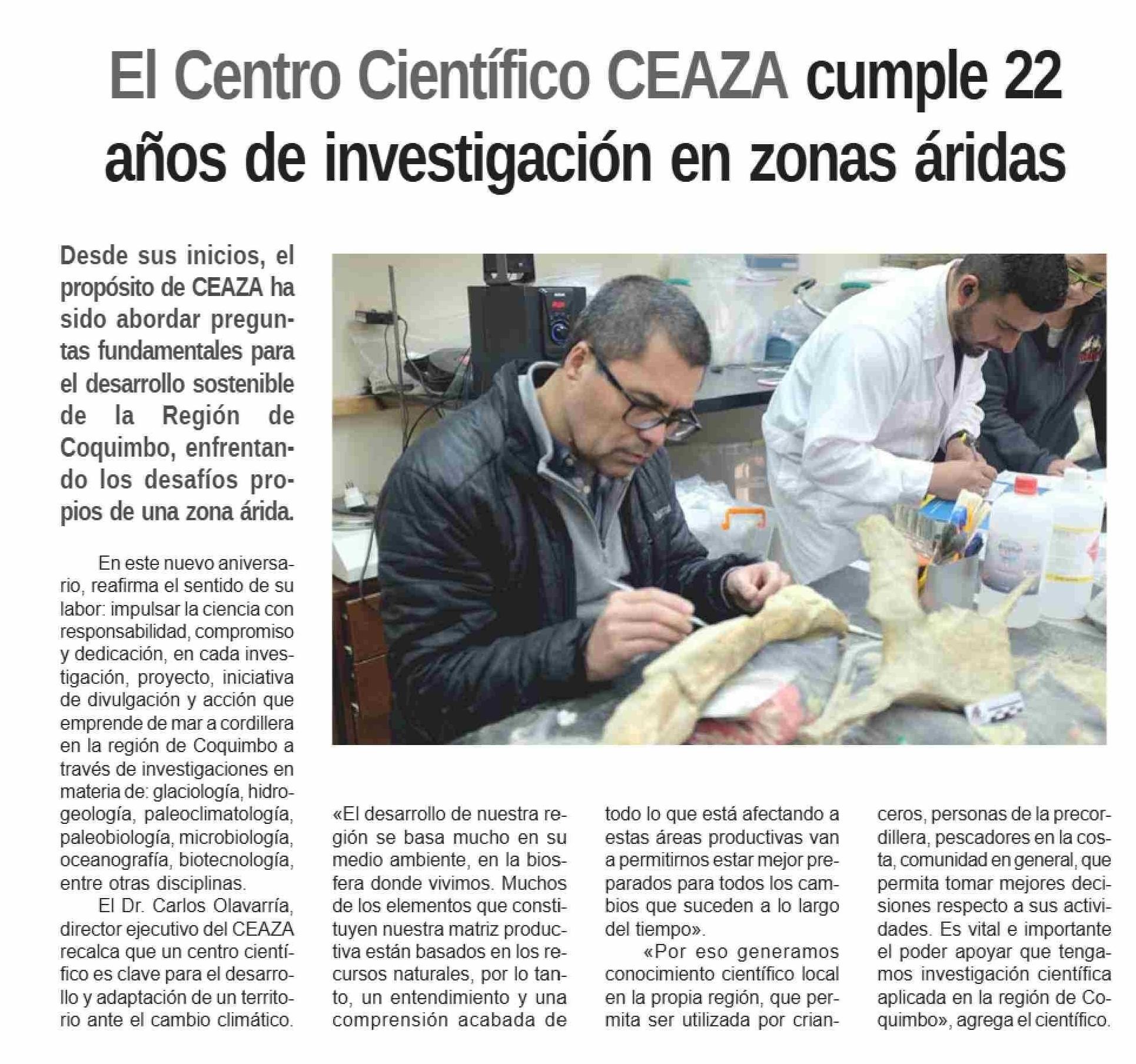 El Centro Científico CEAZA cumple 22 años de investigación en zonas áridas 11-06-2025 Diario la Región |