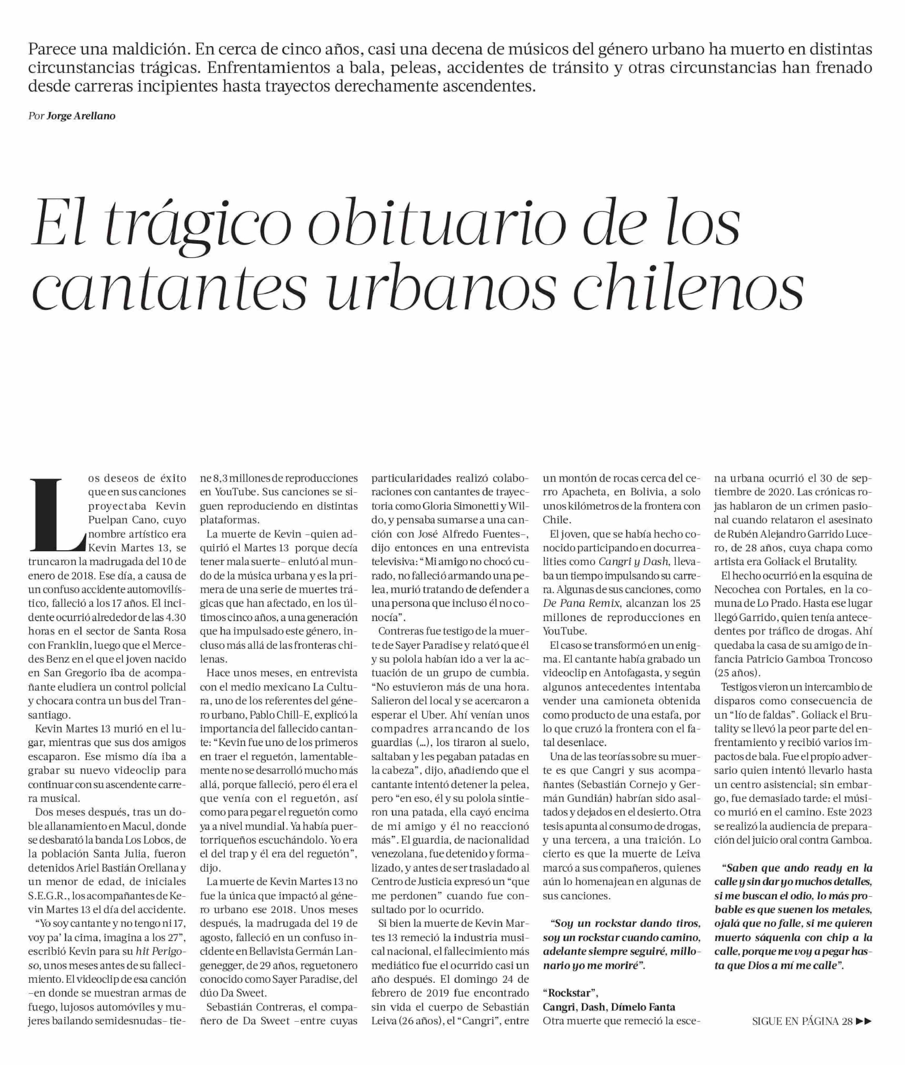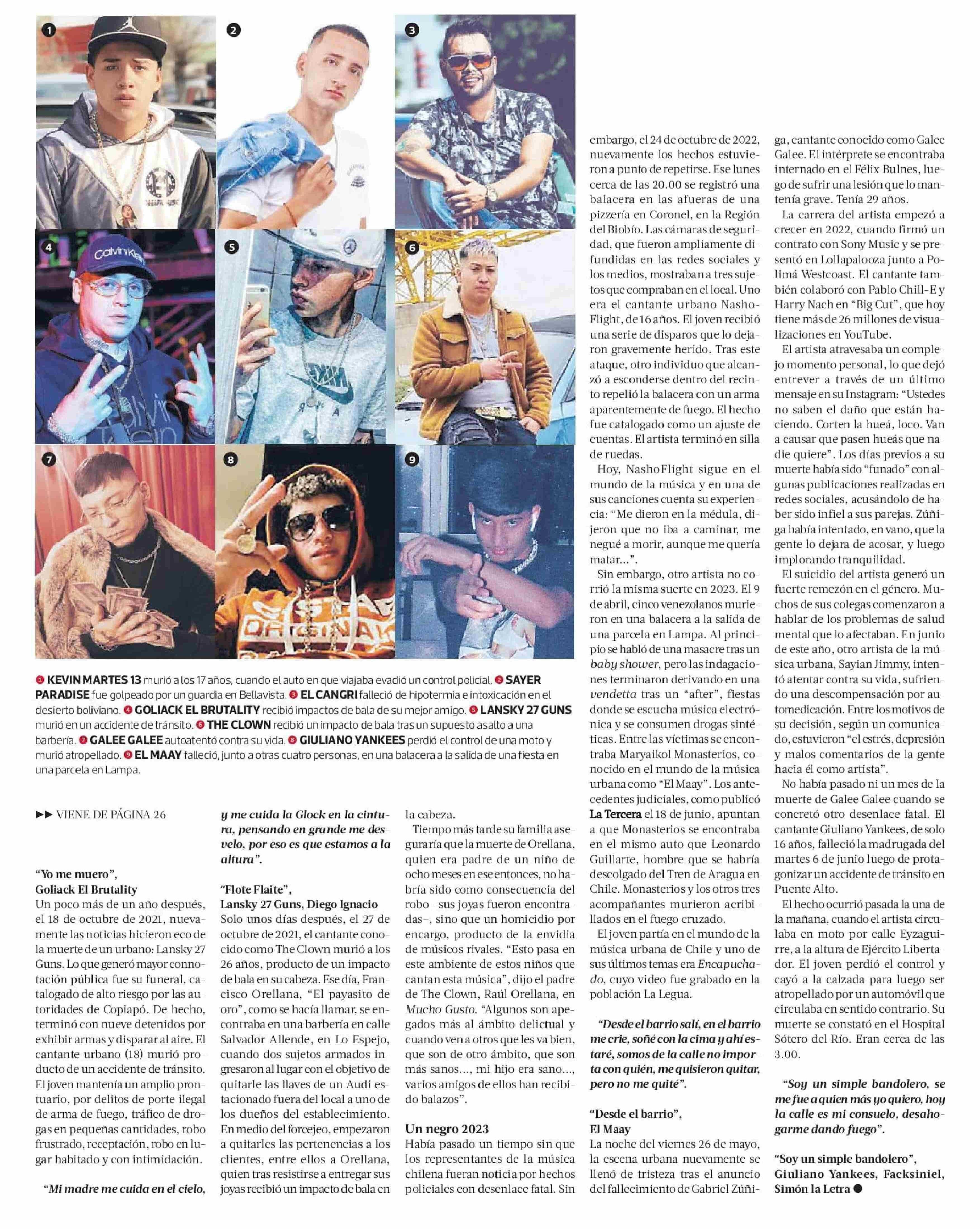 El trágico obituario de los cantantes urbanos chilenos 19-11-2023 La Tercera |