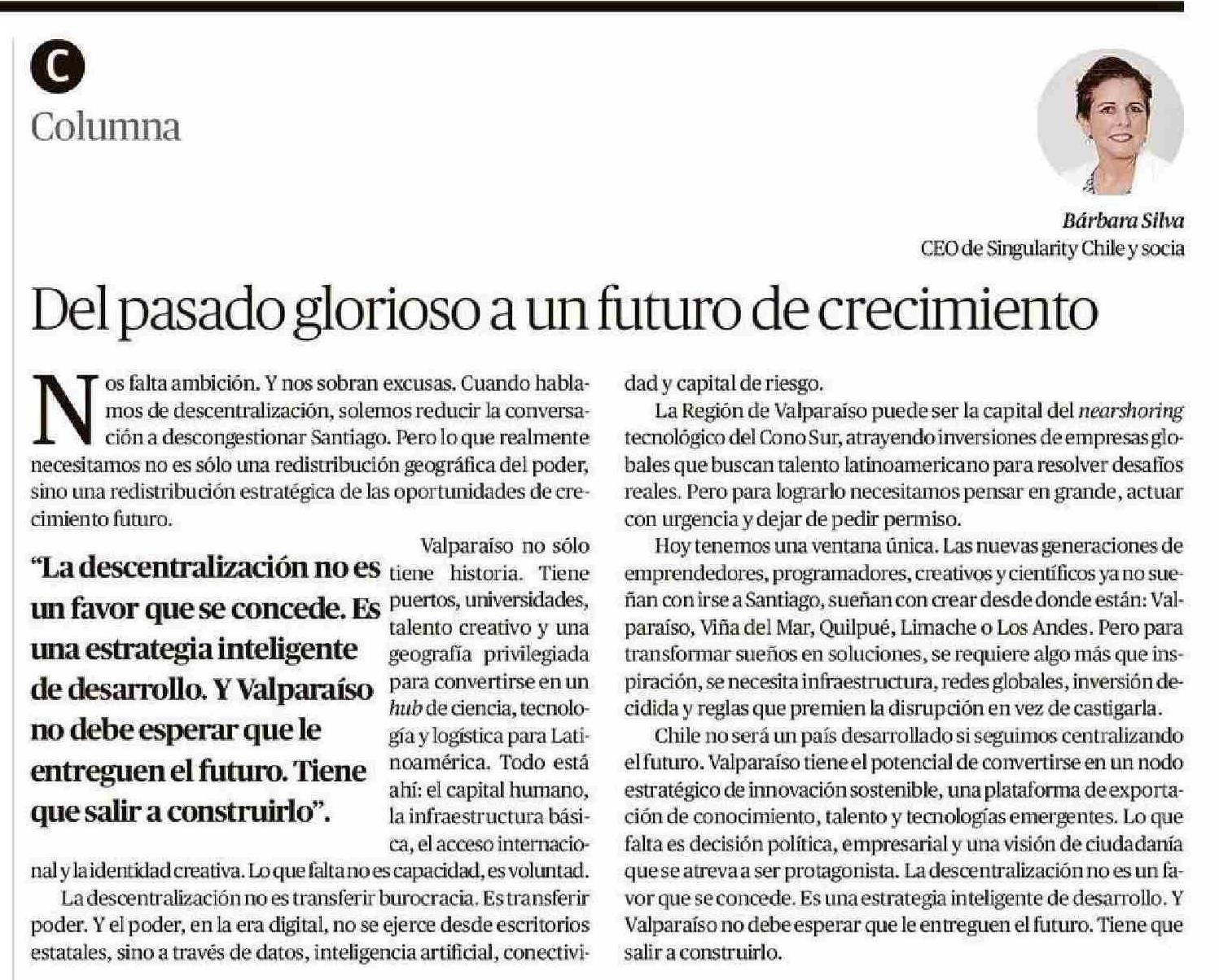 CARTAS: Del pasado glorioso a un futuro de crecimiento 23-05-2025 El Mercurio de Valparaíso |