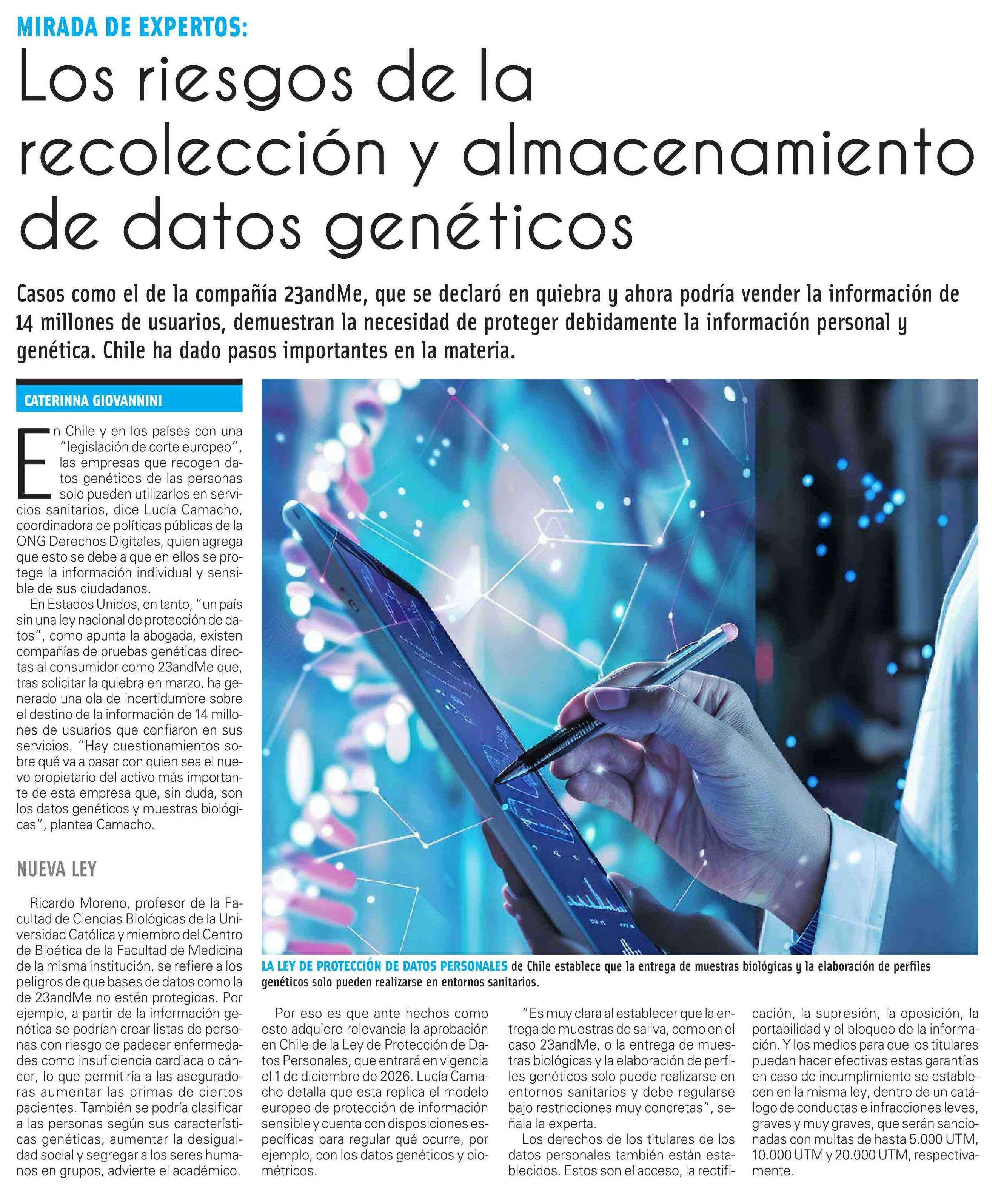 Los riesgos de la recolección y almacenamiento de datos genéticos 30-04-2025 El Mercurio |