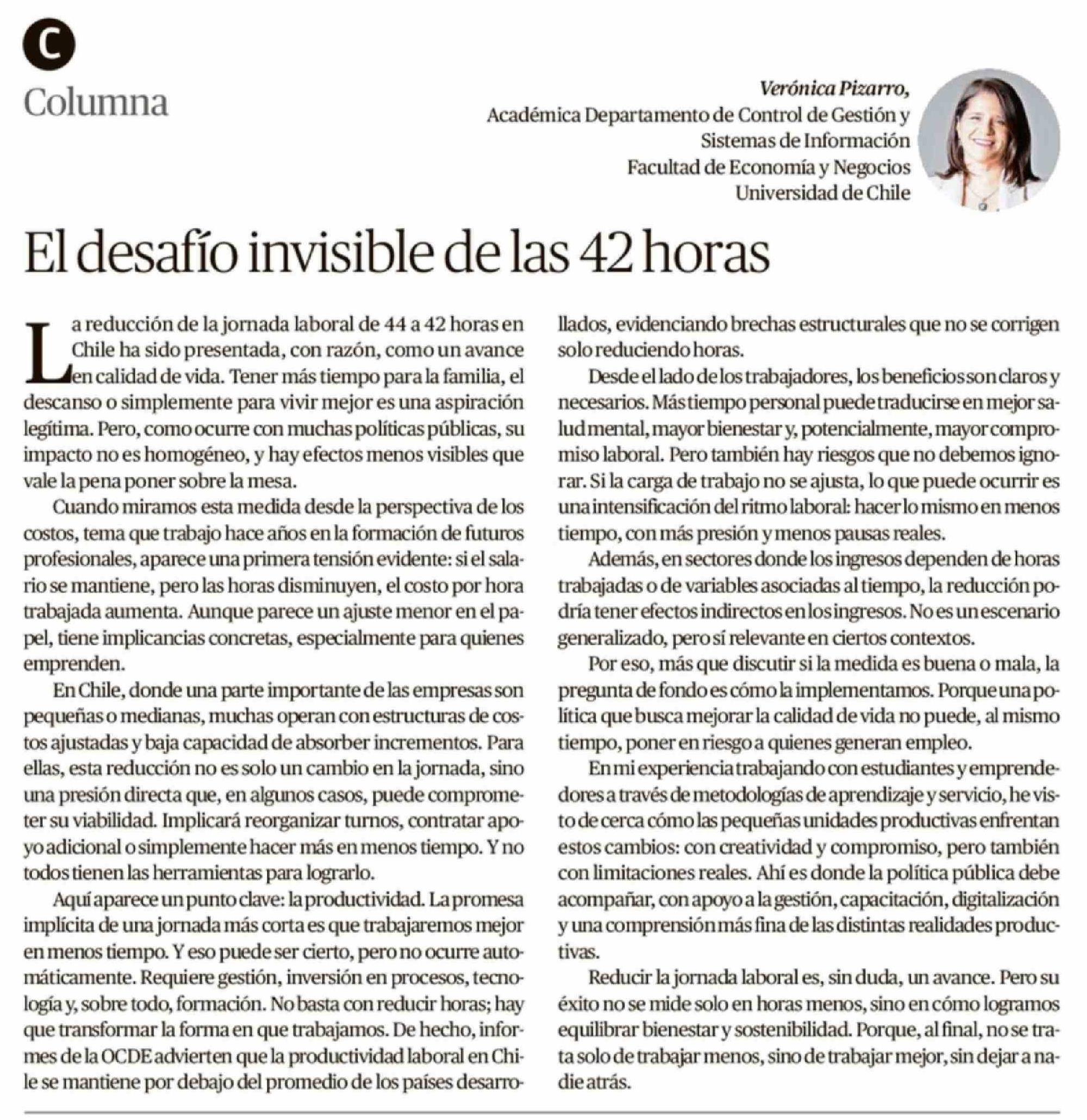 Título: Columnas de Opinión: El desafío invisible de las 42 horas