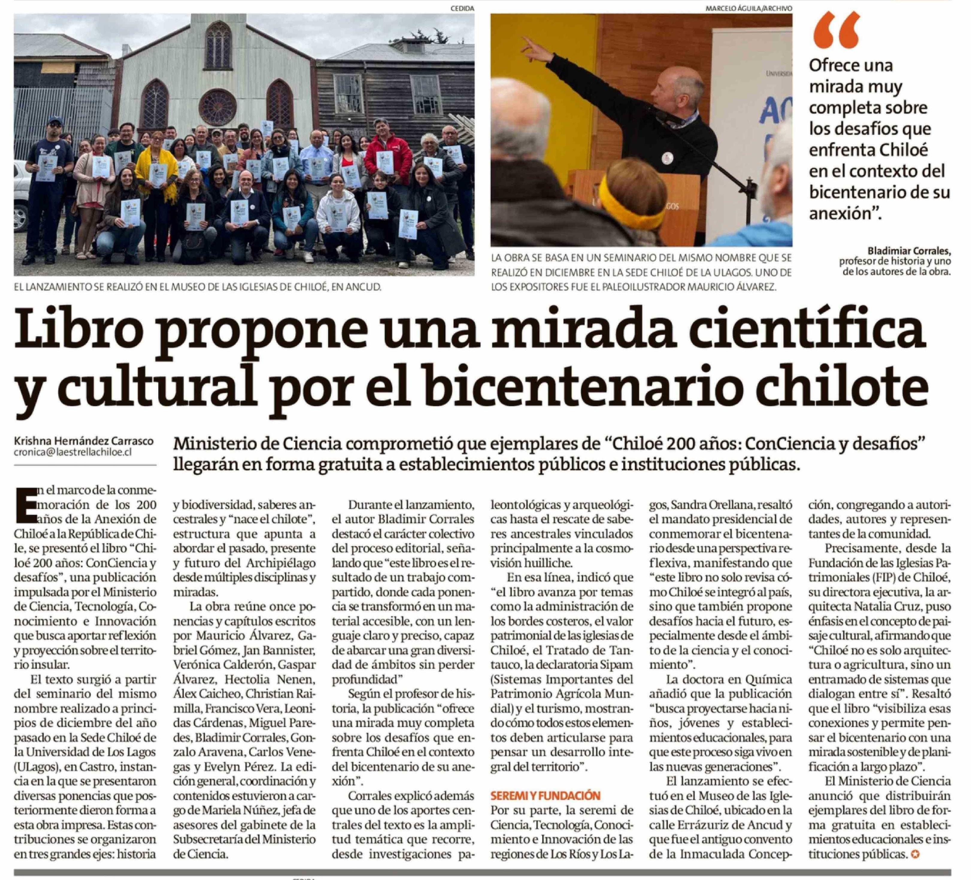 Título: Libro propone una mirada científica y cultural por el bicentenario chilote