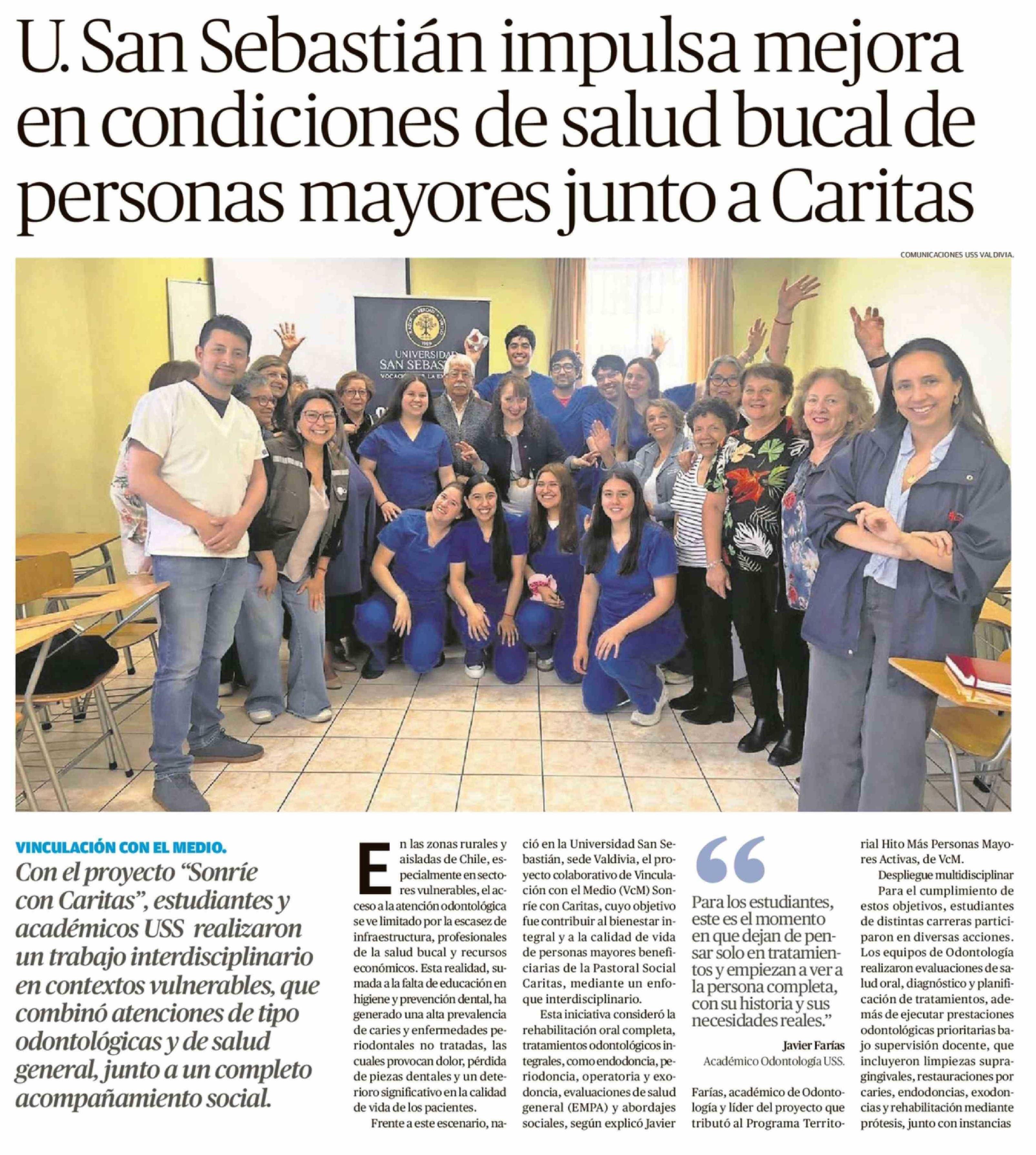 U. San Sebastián impulsa mejora en condiciones de salud bucal de personas mayores junto a Caritas 19-02-2026 Diario Austral Región de Los Ríos |